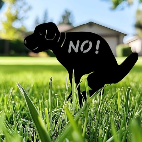 No Pooping Dog Yard Sign, Metal No Peeing Dog Sign with Stake for Grass Lawn,