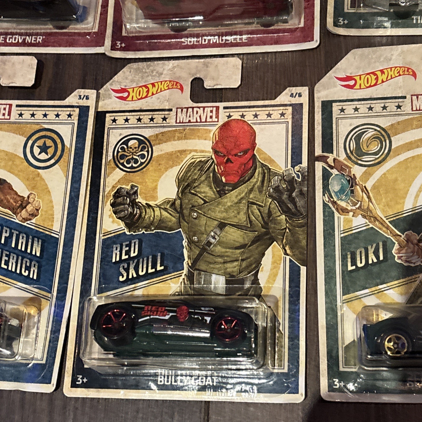 как выглядит Hot Wheels Marvel Cars Set of 6 Ultron Iron Man Thor Loki Red Skull Cpt Am 2018 фото