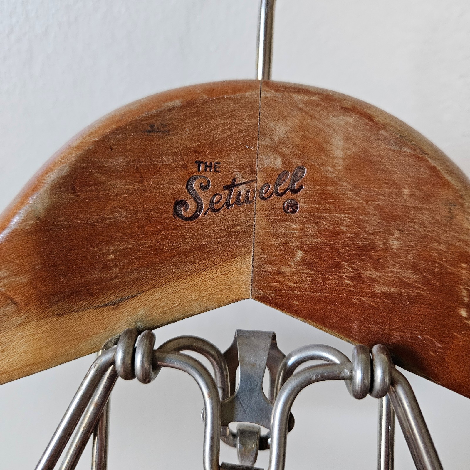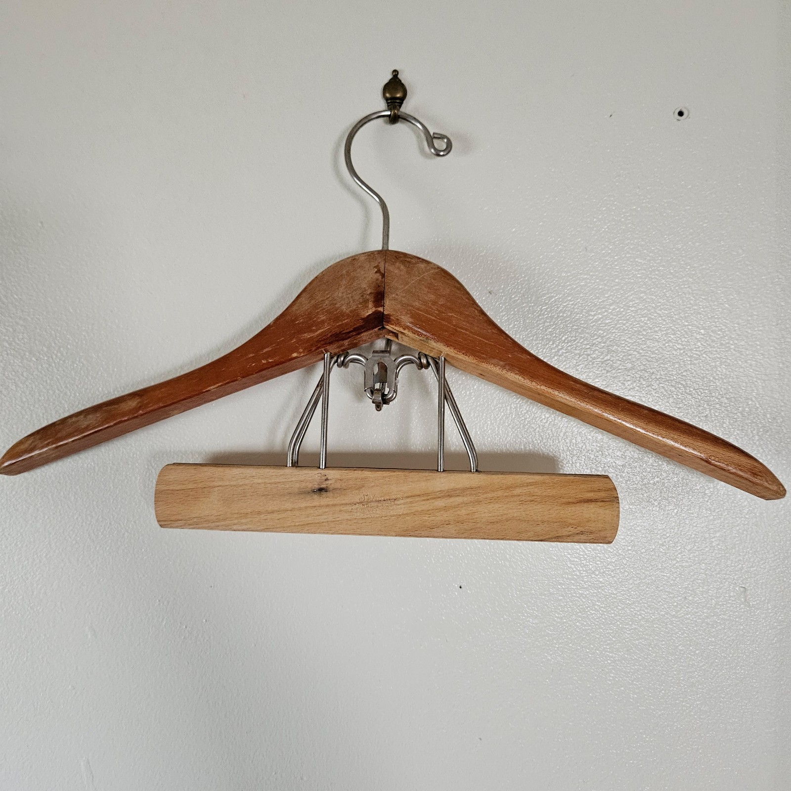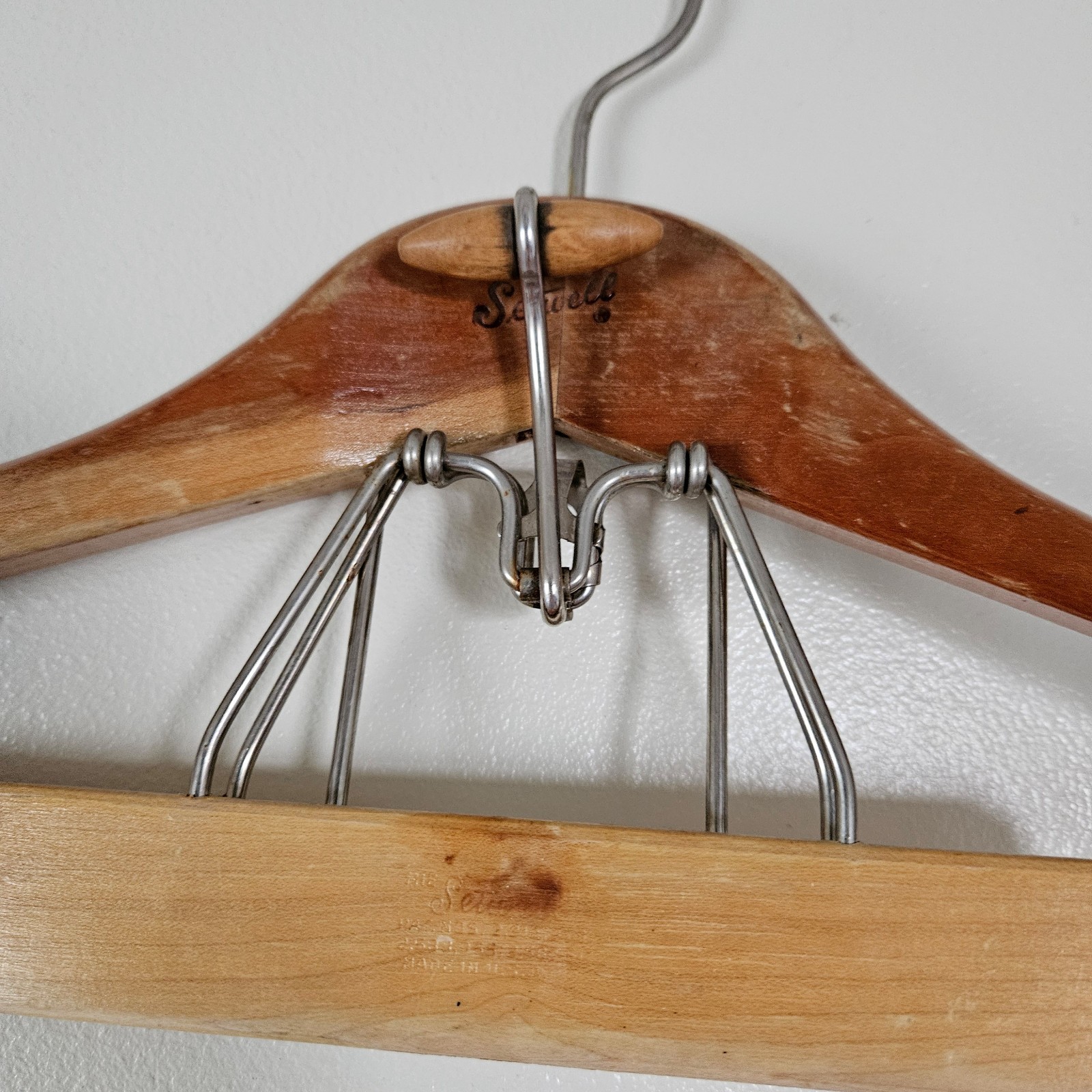Vintage Setwell 18 Heavy Duty Wooden Suit Pant Clothes Hanger Combo Clamp