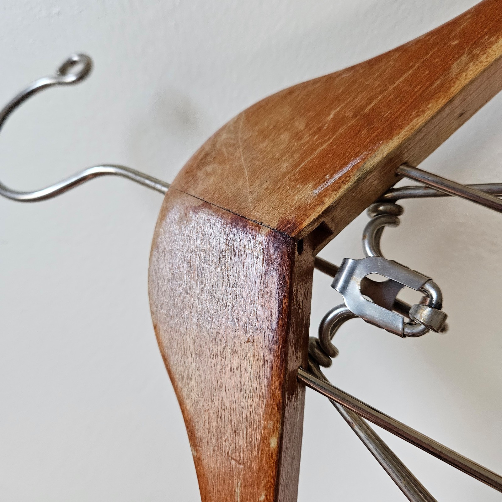 как выглядит Vintage Setwell 18 Heavy Duty Wooden Suit Pant Clothes Hanger Combo Clamp фото