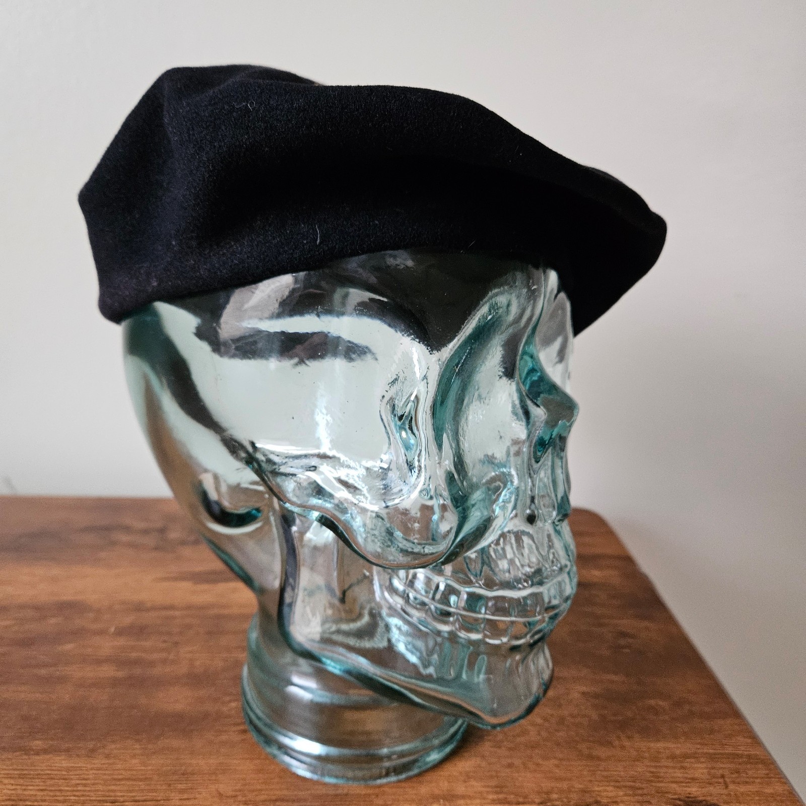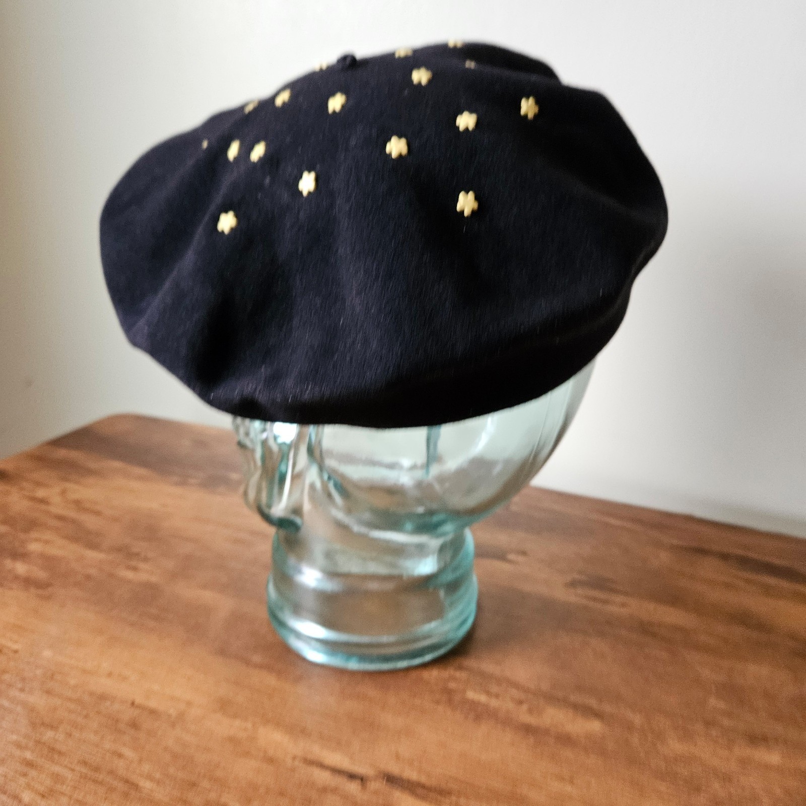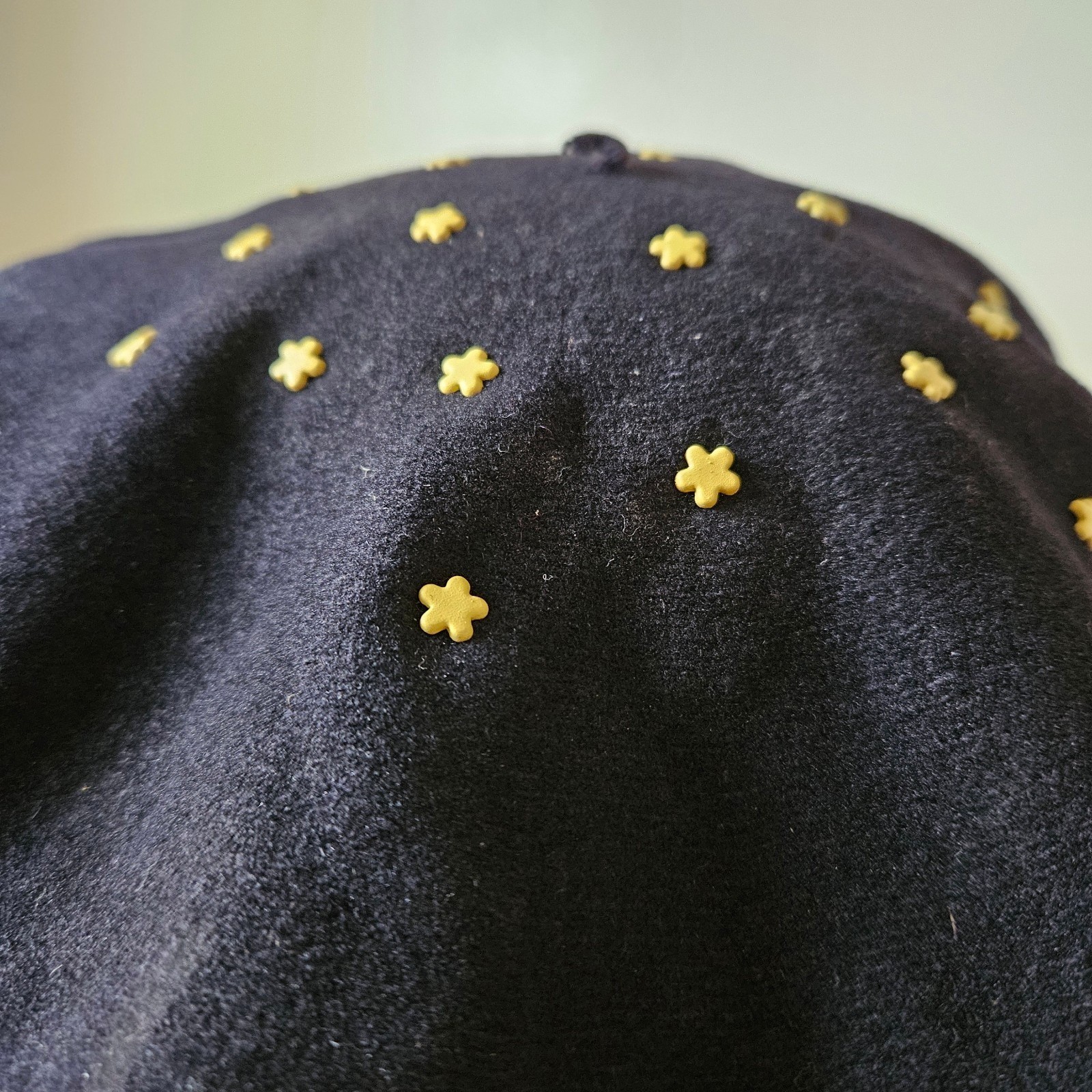 как выглядит Vintage Black 100 Wool Felt 60s 70s Daisy Flower Power Studded Beret Hat Cap фото
