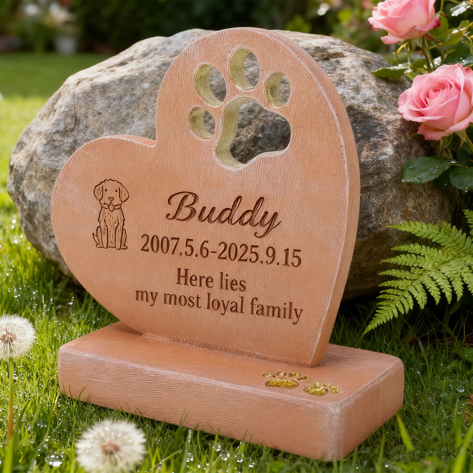 Pet Dog Tombstone Memorial Heart Shaped Dog Grave Marker Sympathy Present
