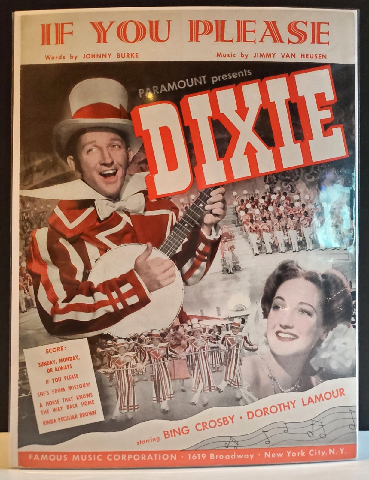 If You Please 1943 Sheet Music Paramount Dixie Bing Crosby Dorothy Lamour Famous