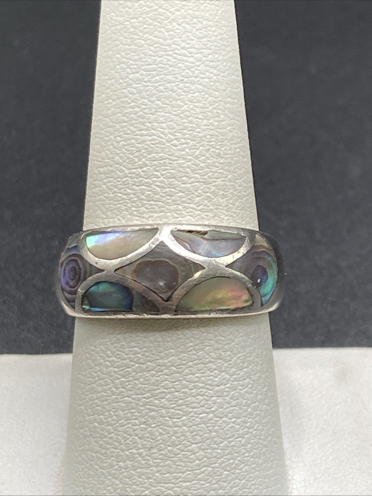как выглядит Designer Sterling Silver Inlaid Abalone Band Ring - Size 8 1/2 фото