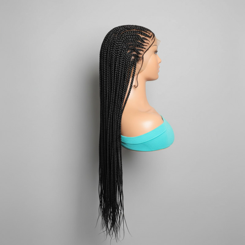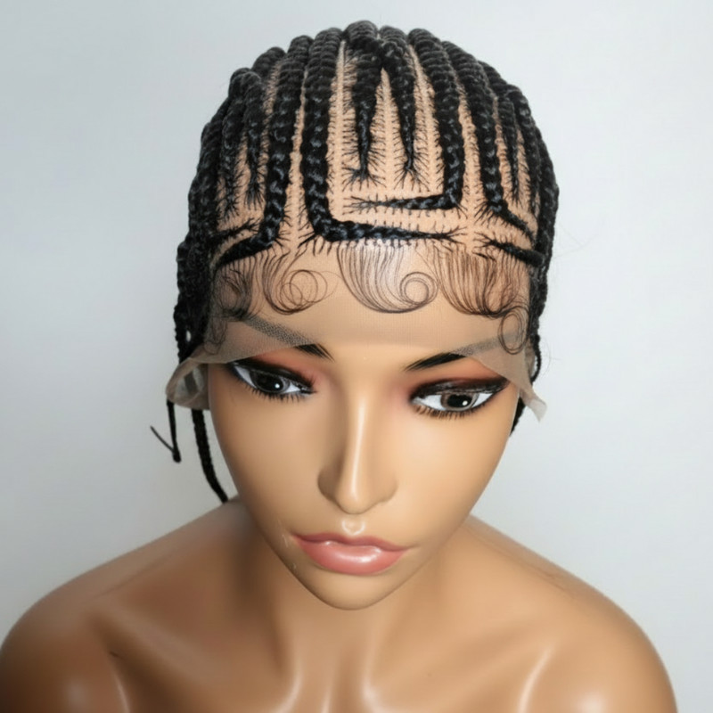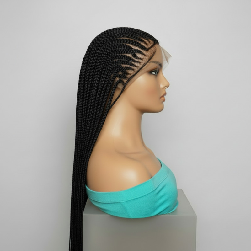 Black Braided Wig. Cornrow with Single Braids. Full Lace With Baby Hair Lemonade