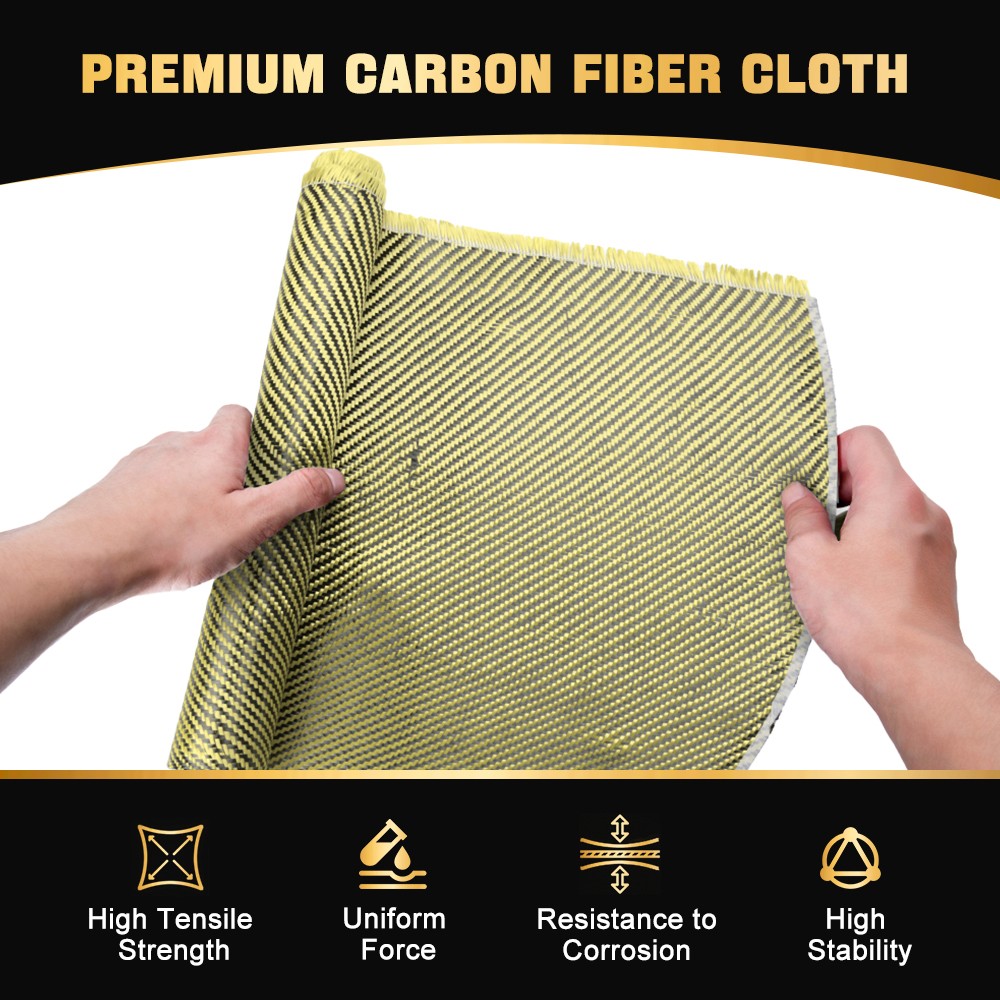 12 x 5FT Twill Weave Black Yellow Carbon Fiber Fabric Cloth 3K, 9oz, 12x59