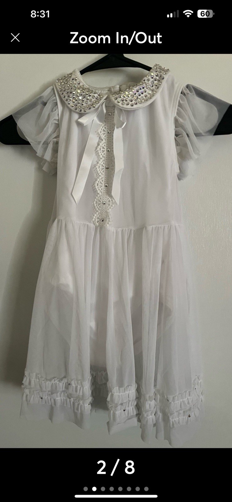 как выглядит White Lyrical dress dance line Size 8, Intermediate Child Swarovski фото