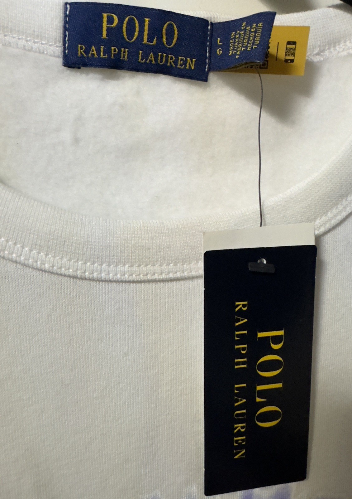 как выглядит Polo Ralph Lauren Mens Logo Tie-Dye Print Fleece Sweatshirt White L фото