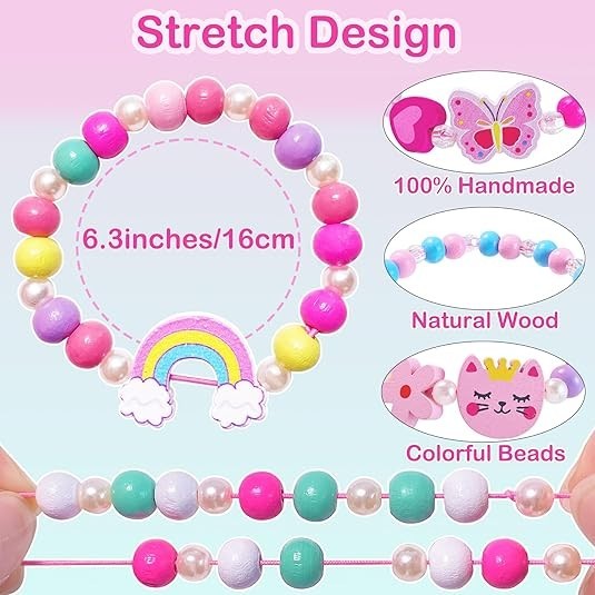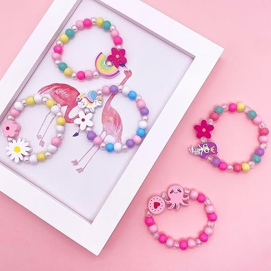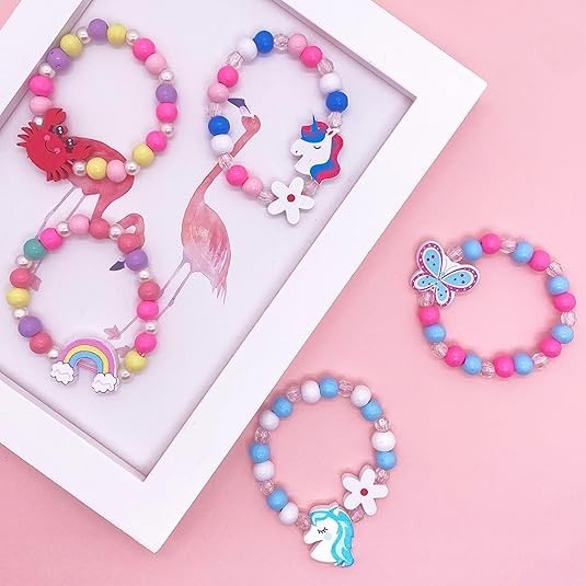 12pcs Girls Unicorn Mermaid Beaded Bracelets Party Favors Goodie Bag Gifts