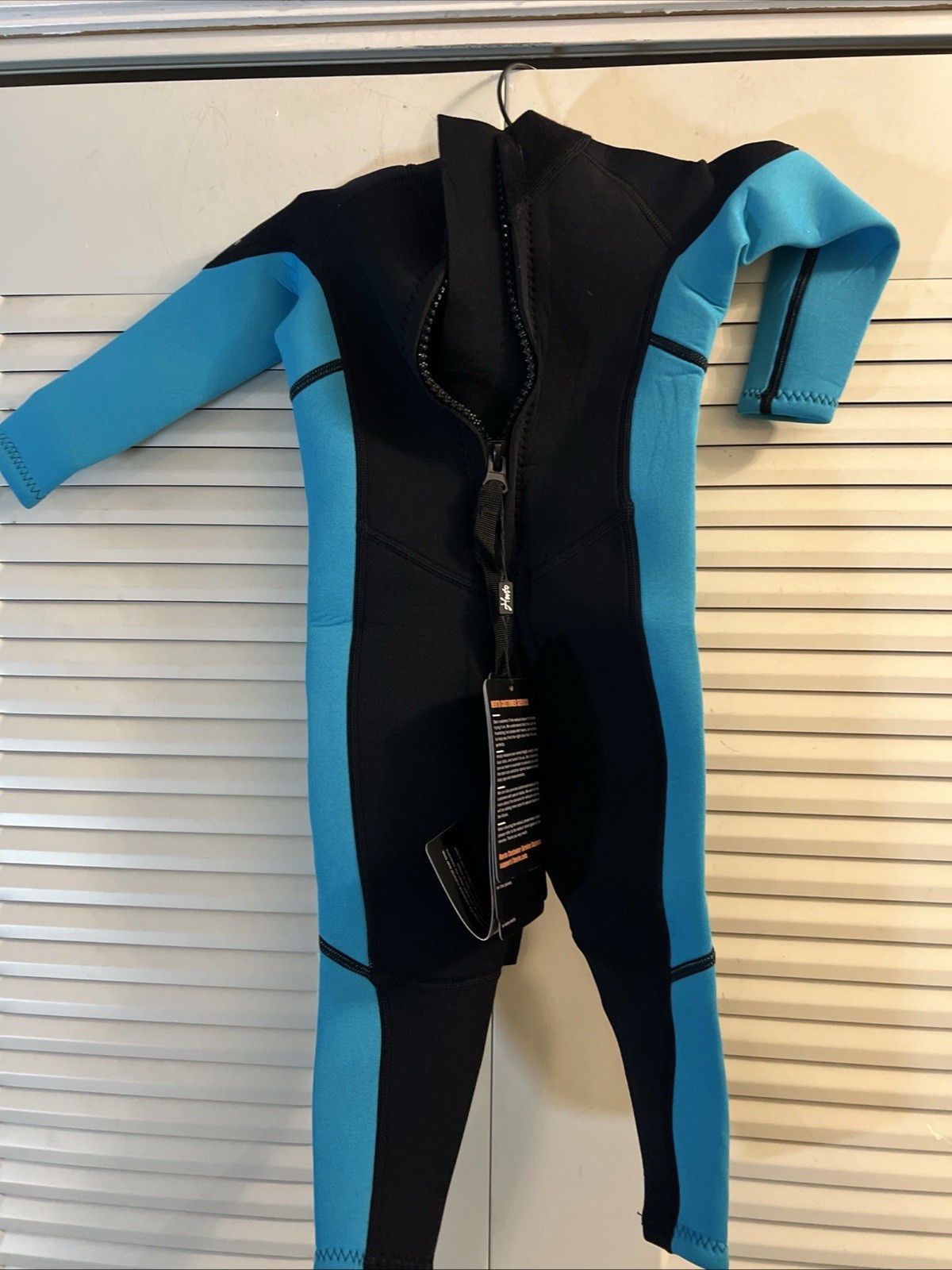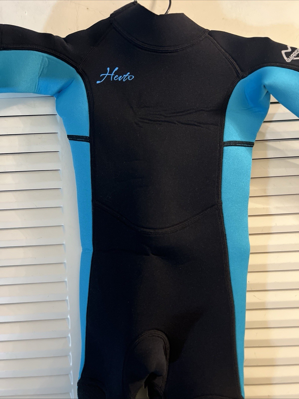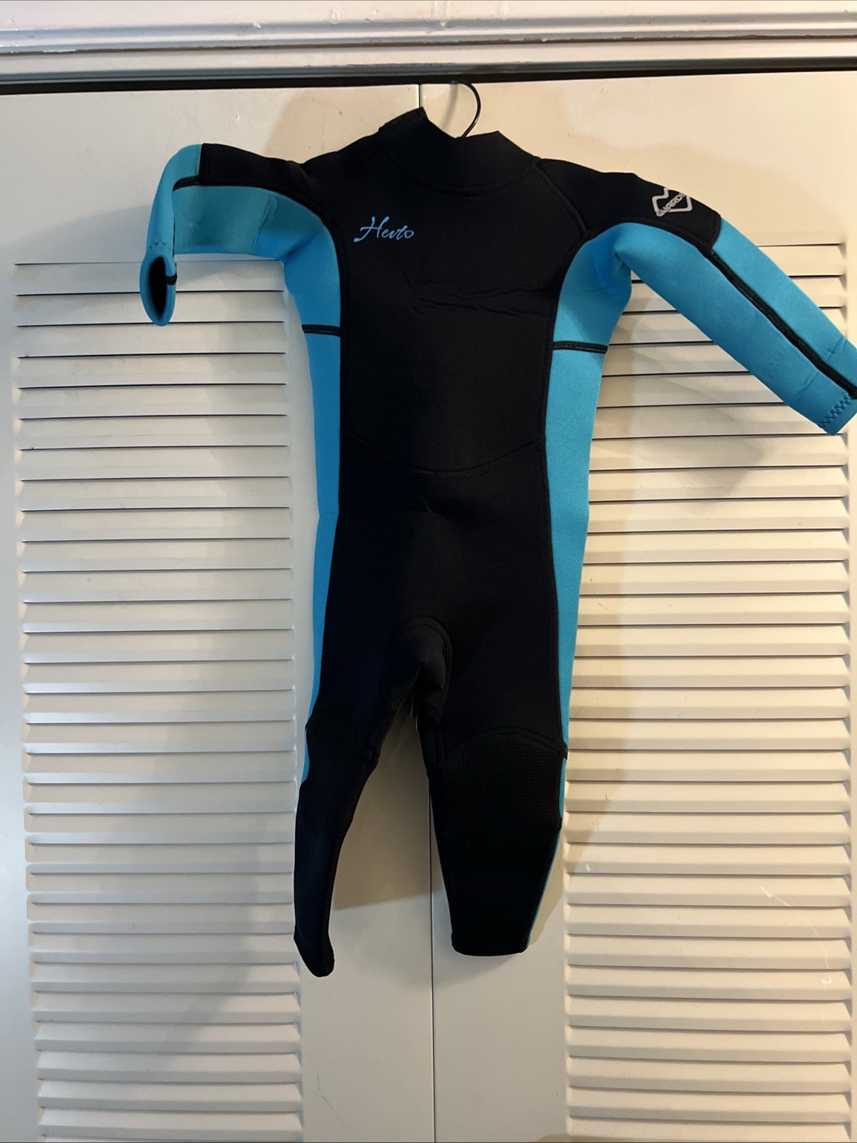HEVTO Black/Turq Neoprene Guardian WETSUIT Full Body Surf Beach Kids Sz 2