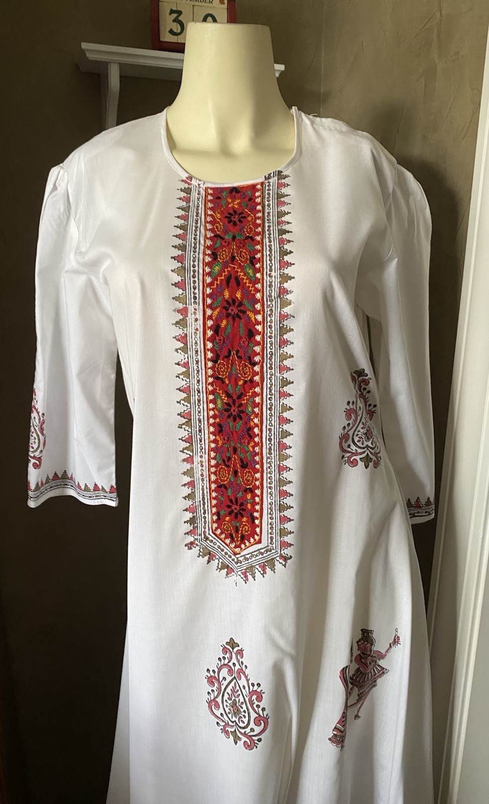 как выглядит Vintage Handmade Khaadi Embroidered Kurti Kameez Festival Ethnic flare dress фото
