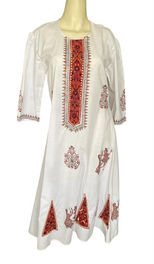 Vintage Handmade Khaadi Embroidered Kurti Kameez Festival Ethnic flare dress