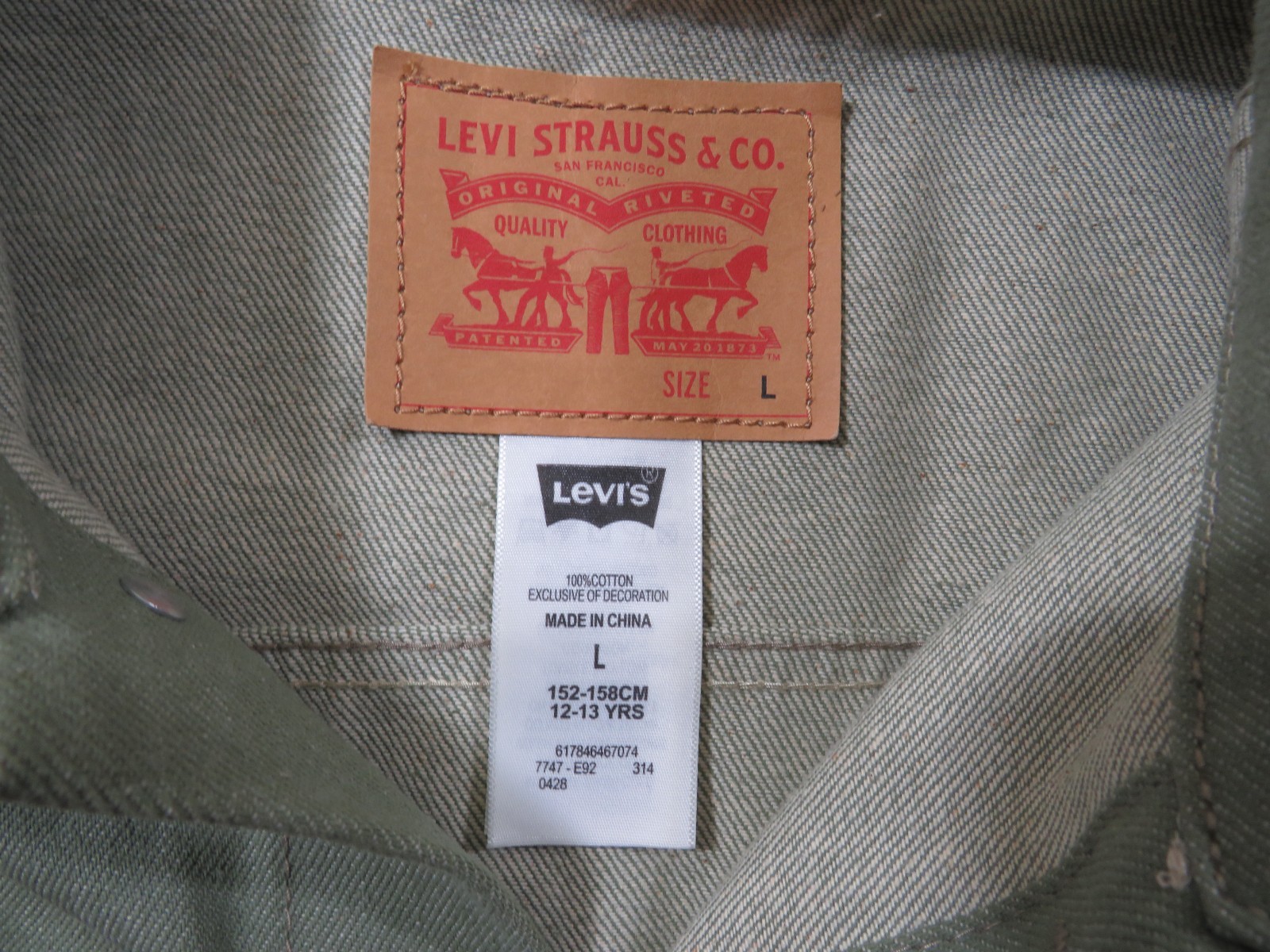 как выглядит Levis Type 1 Denim Trucker Jacket boys Size L 12-13 years Green фото