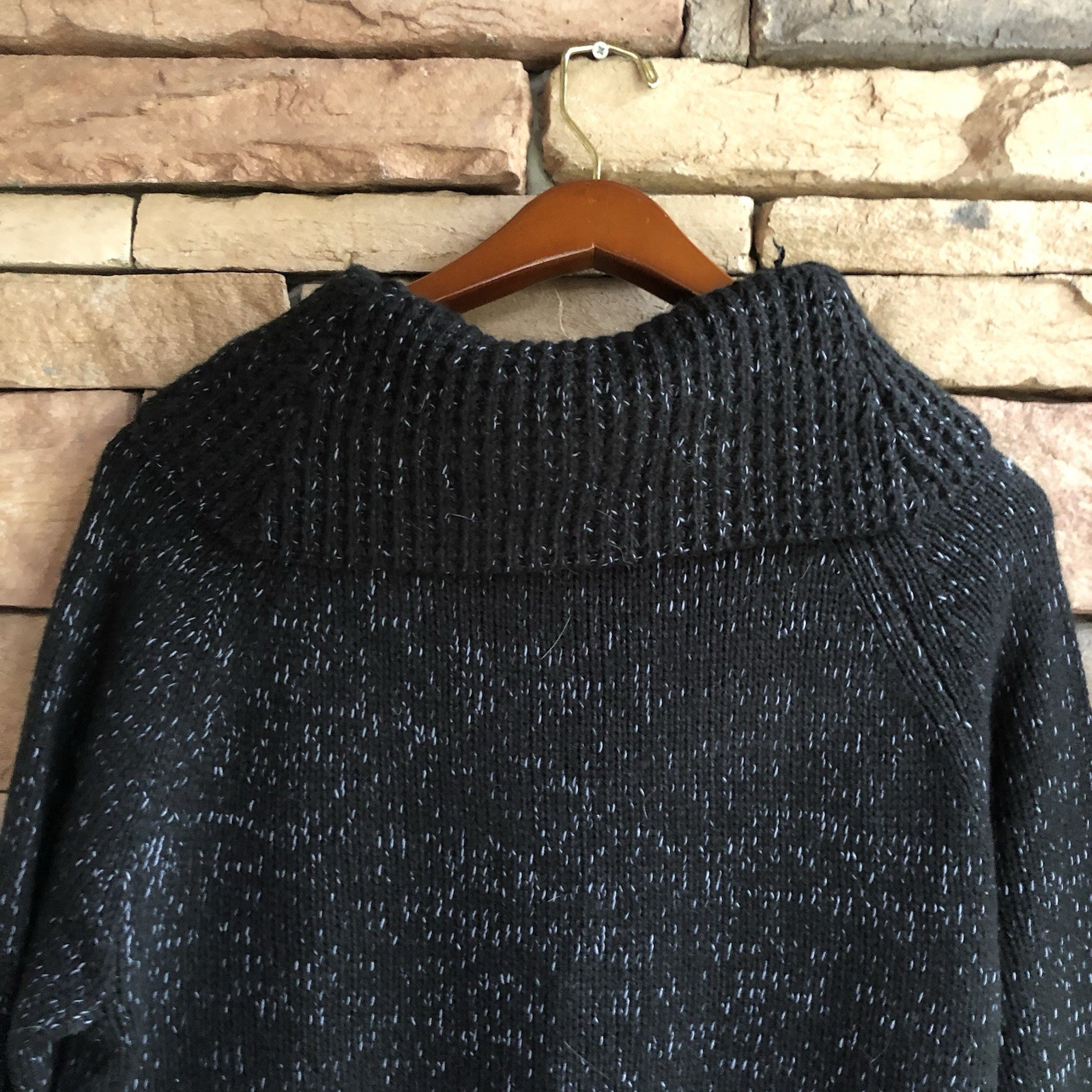 как выглядит DKNY black speckle Cowl Neck Sweater NWT Women XL фото