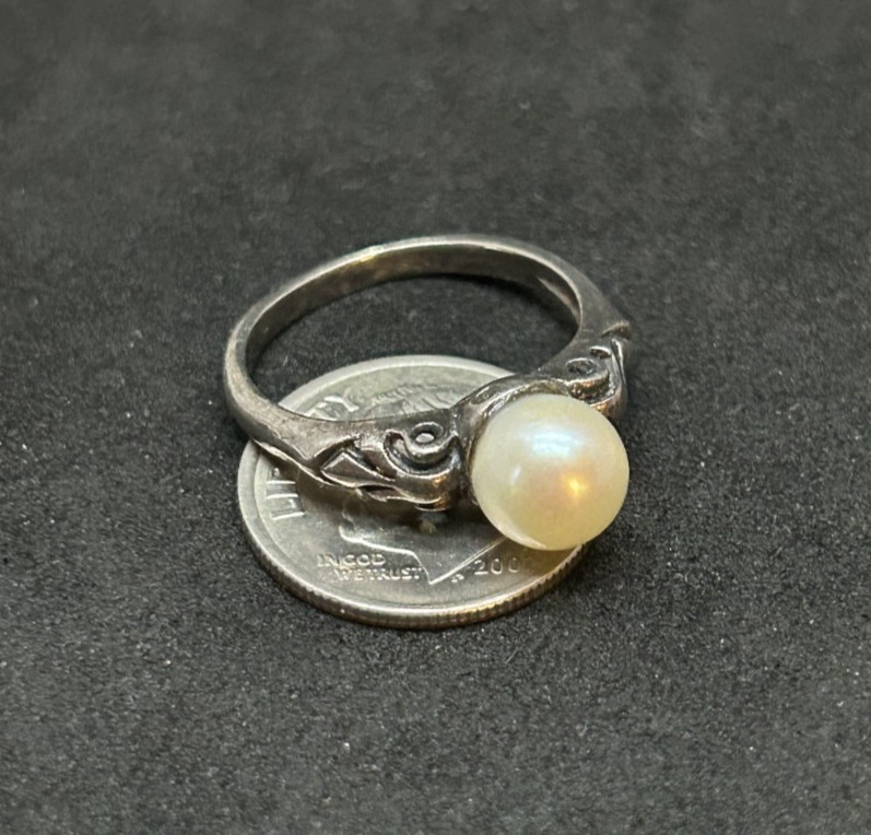 925 Sterling Pearl Vintage Ring Sz 6 - 2.44g