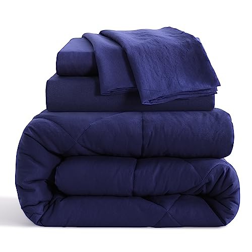 Twin Comforter Set with Sheets, 5 Pieces Soft and Twin 5 Pieces Navy