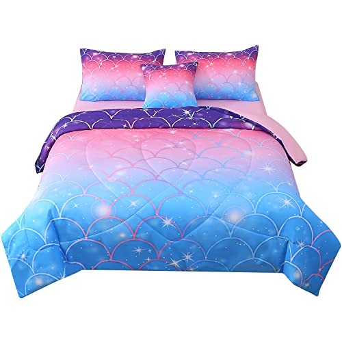Twin Size Mermaid Comforter Set, 6 Piece Bed in A Bag 3D Twin 6 pc Pink