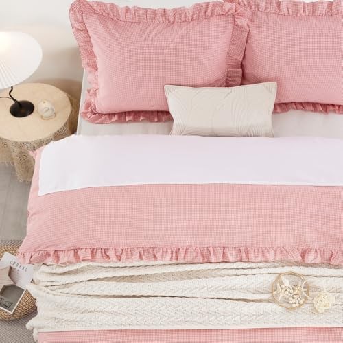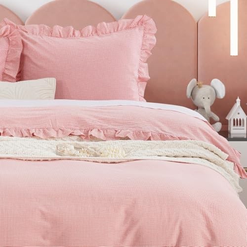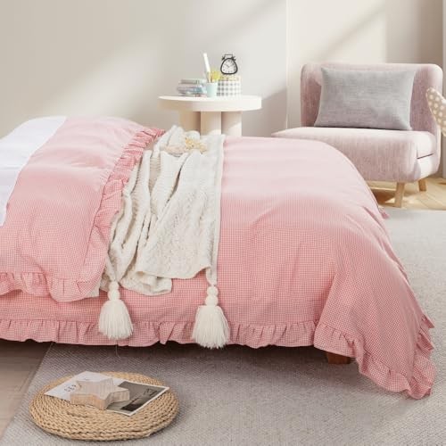 Twin XL Ruffle Duvet Cover Set, Twin XL 68X92 Cover 1 Sham Gingham Pink
