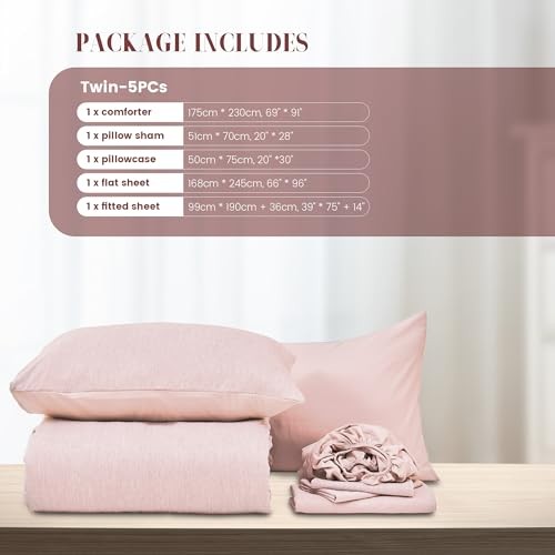 Twin Comforter Set with Sheets 5 Pieces, Pink Twin Comforter Set for College