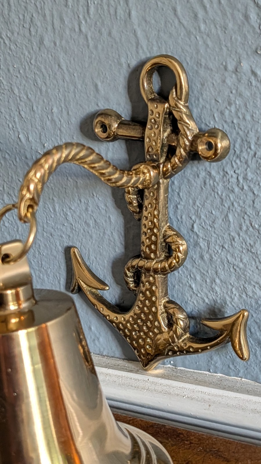 Bell Wall Hanging Ship Bell 6 Brass Anchor Boat Decor Nautical Chain TAIWAN