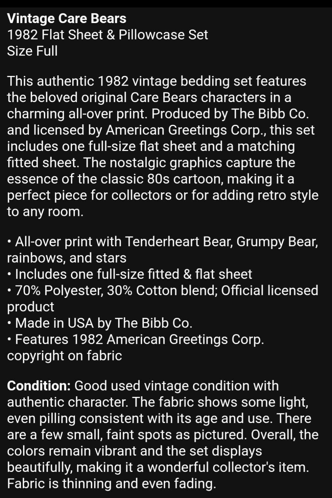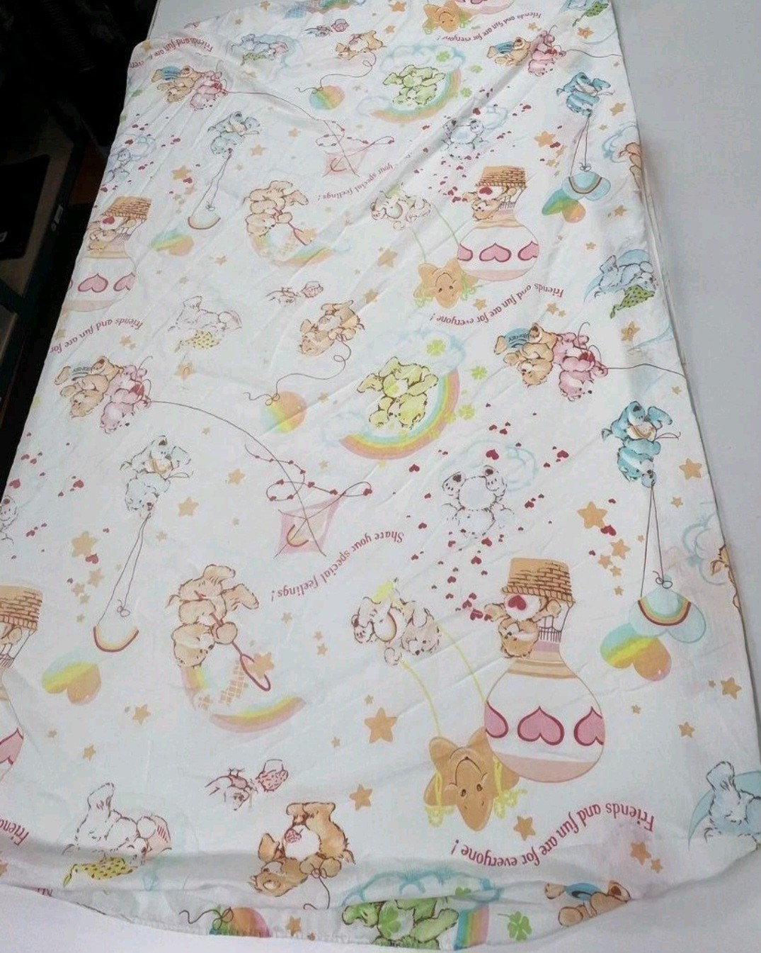 Vintage Rare 1982 Care Bears Fitted And Flat Sheet Full Size Made In U.S.A.