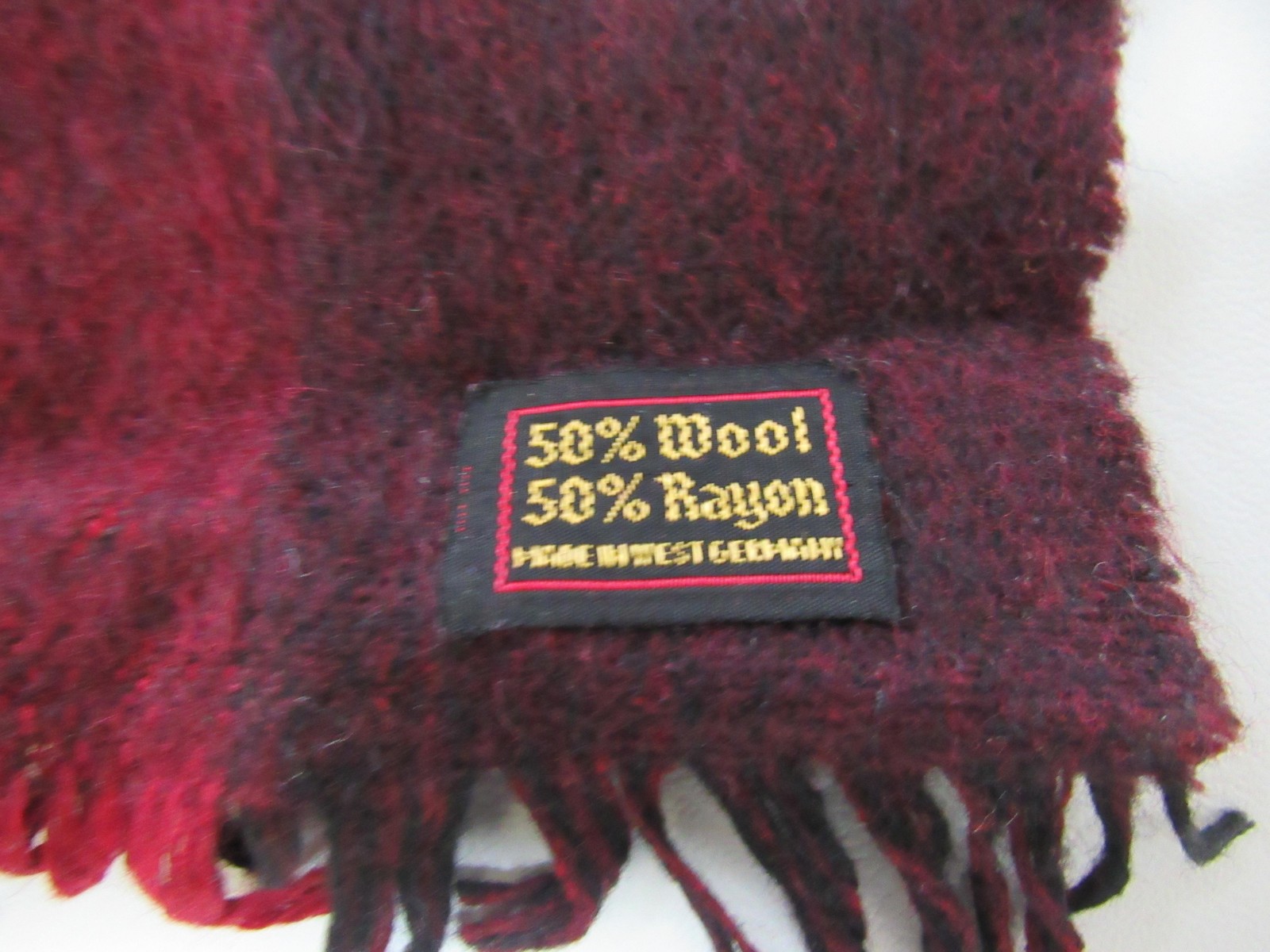 как выглядит Vintage Tartan Plaid Scarf Red Black Wool Rayon Made West Germany Fringe 70s фото