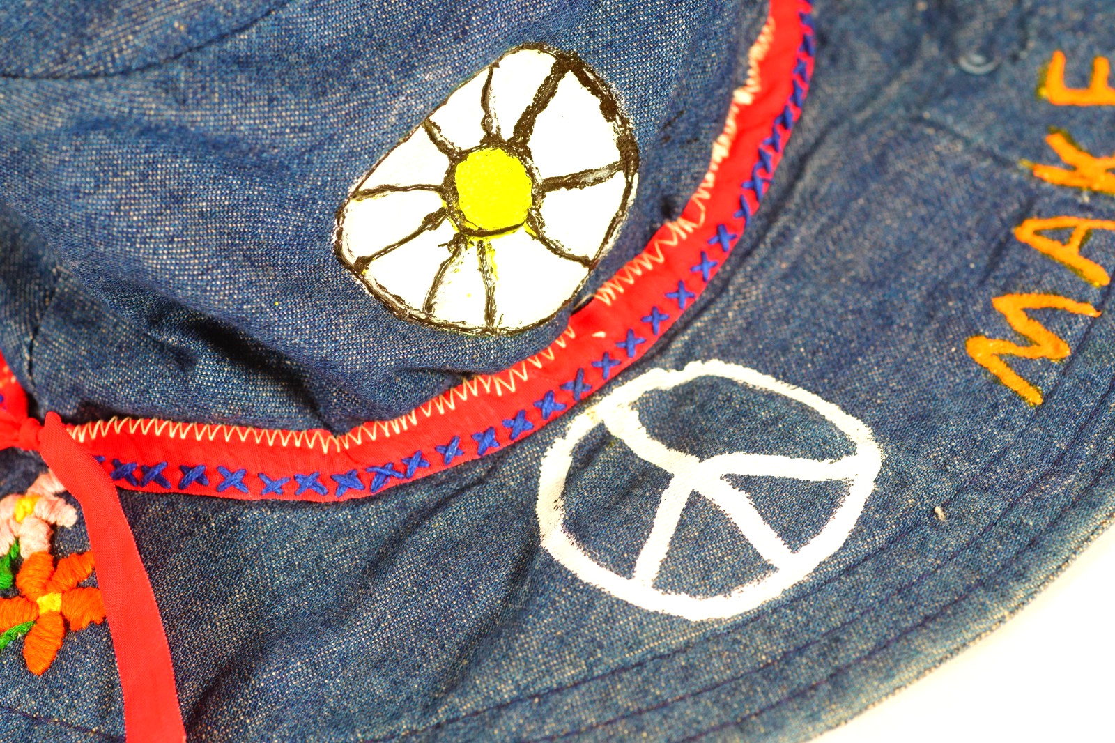 Vietnam Era Hippy Hat Make Love Not War Flower Embroidered Protester Bucket Hat