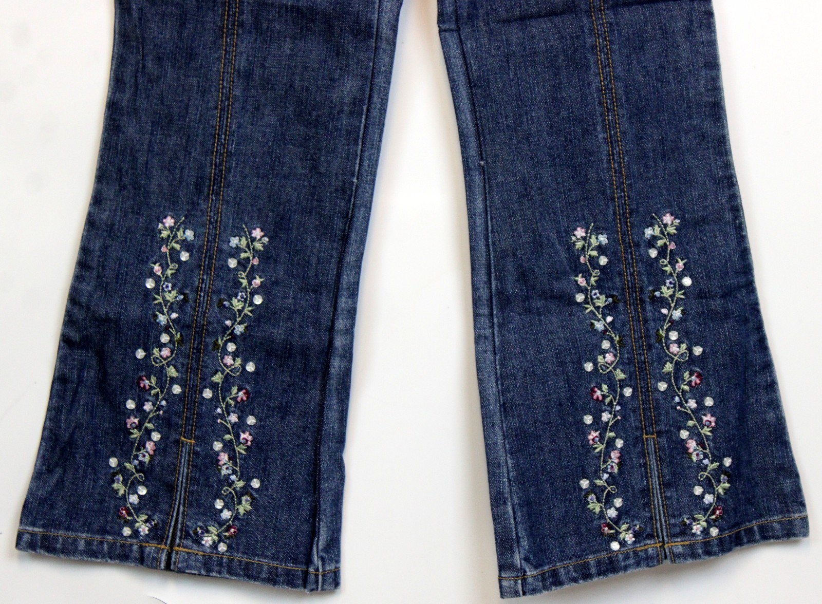как выглядит NWT 2005 Gymboree Winter Princess Denim Jeans Flowers Embroidered Straight Sz 6 фото