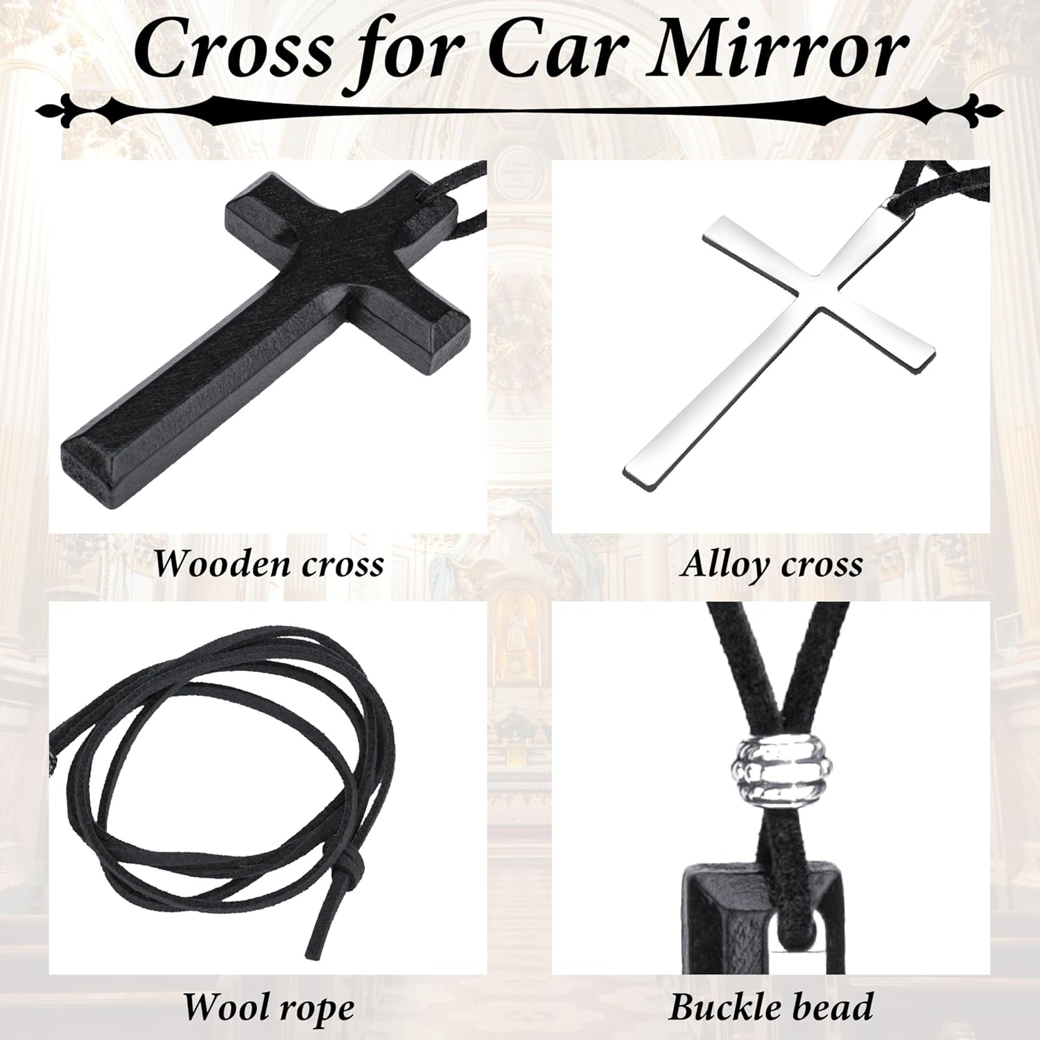 • Cross for Car Mirror Hanging, Wood Cross Charms for Rear View Mirror, Car Hangin