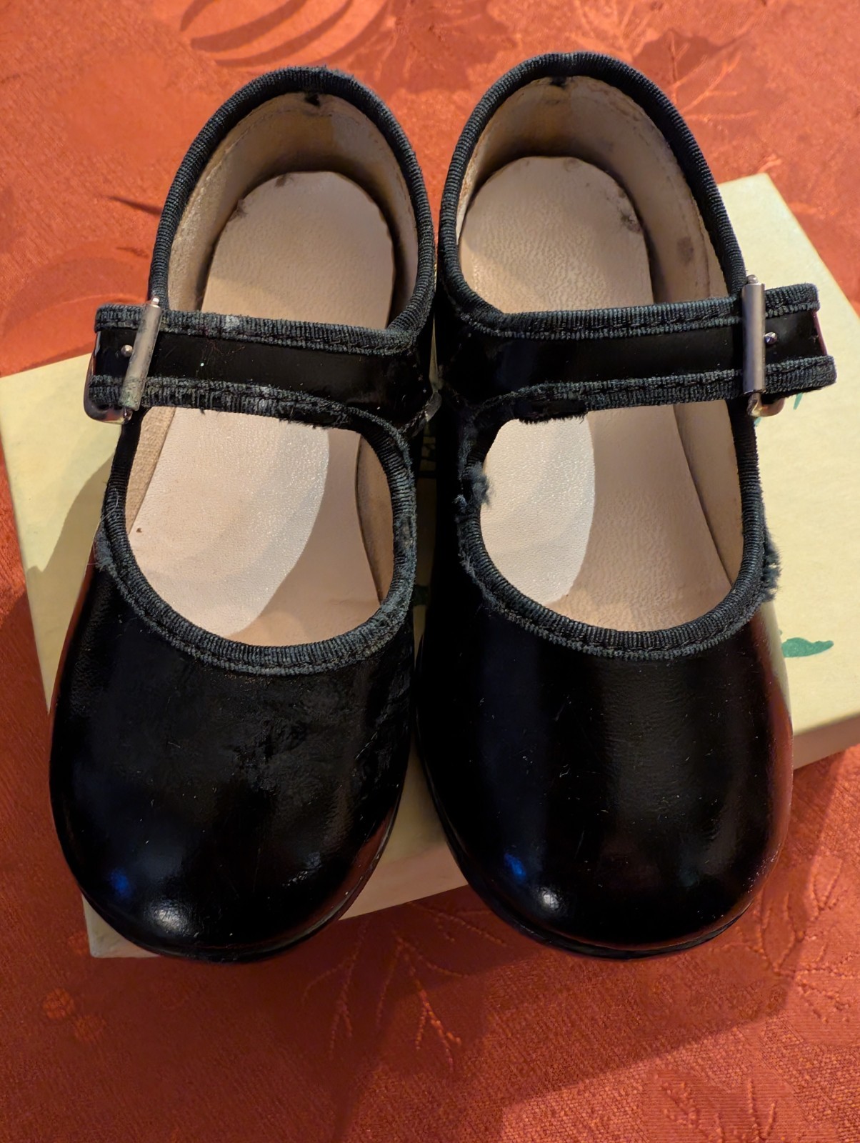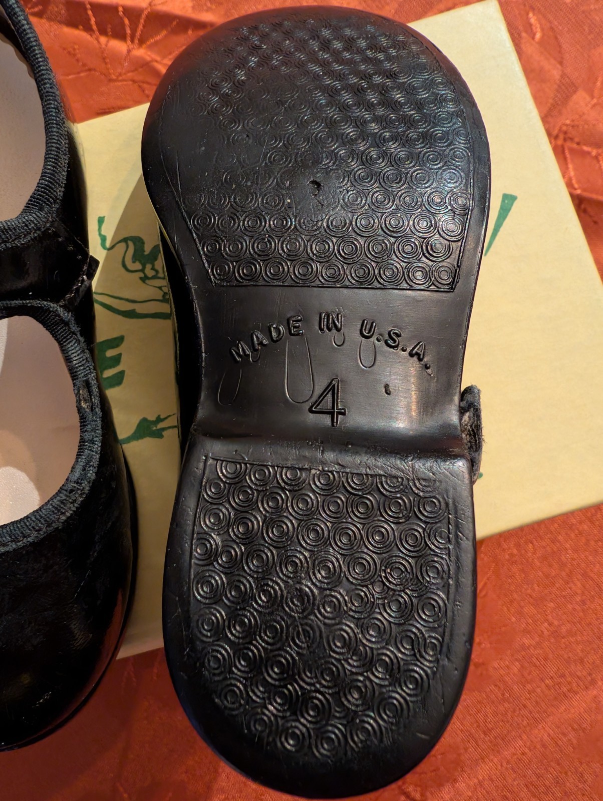 Little Imp Vintage 1950s Girls Black Patent Leather Shoes Size 4T Mary Janes