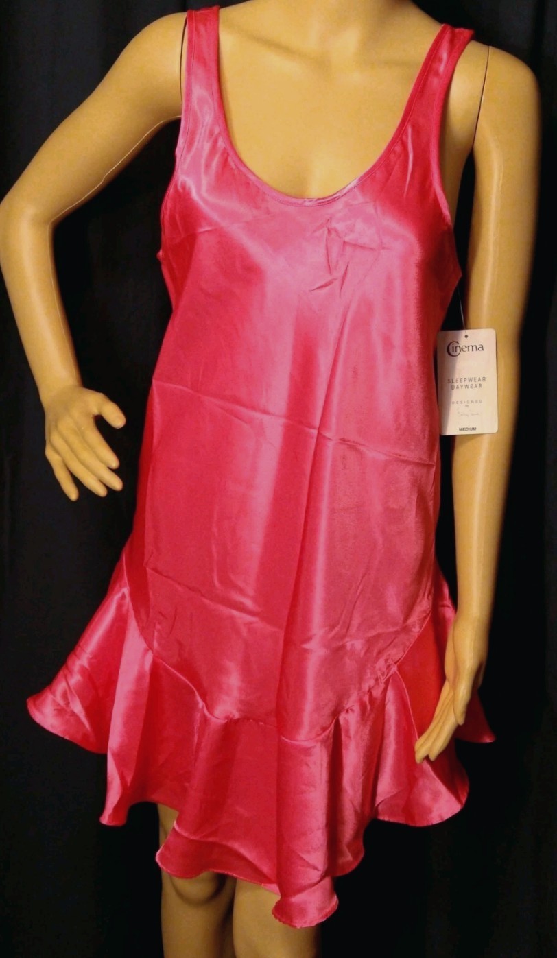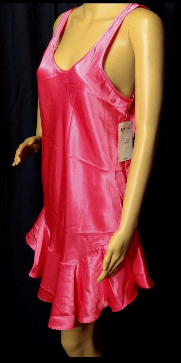 как выглядит Cinema Etoile Nightie Pink Satin Slip Dress Ruffled Hem Womens Size Medium NEW фото
