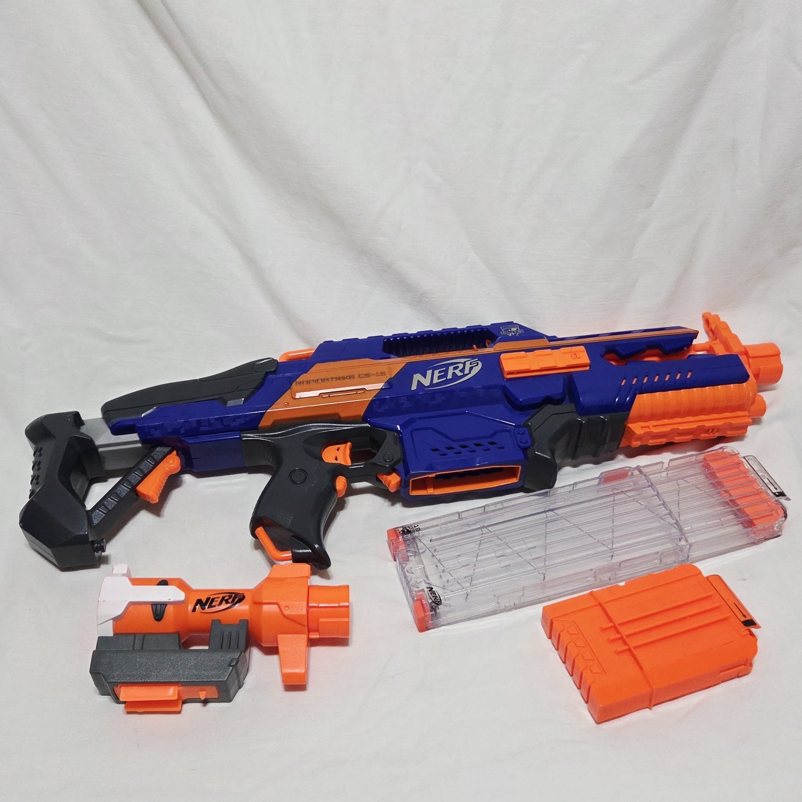 Nerf CS-18 N-Strike Elite Rapidstrike Blaster W/ Barrel Extra 6 Dart Mag Clip