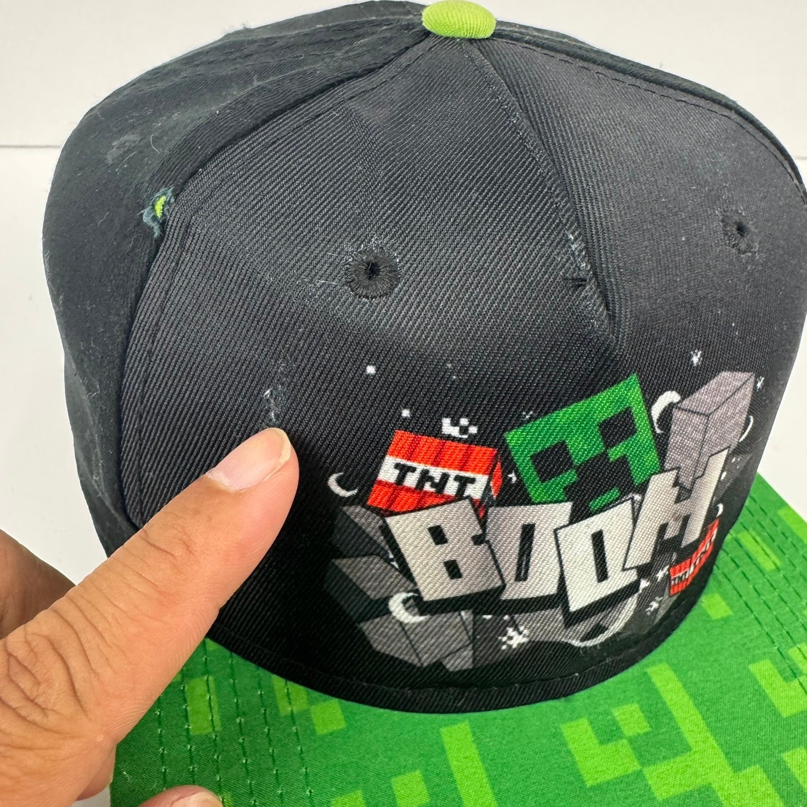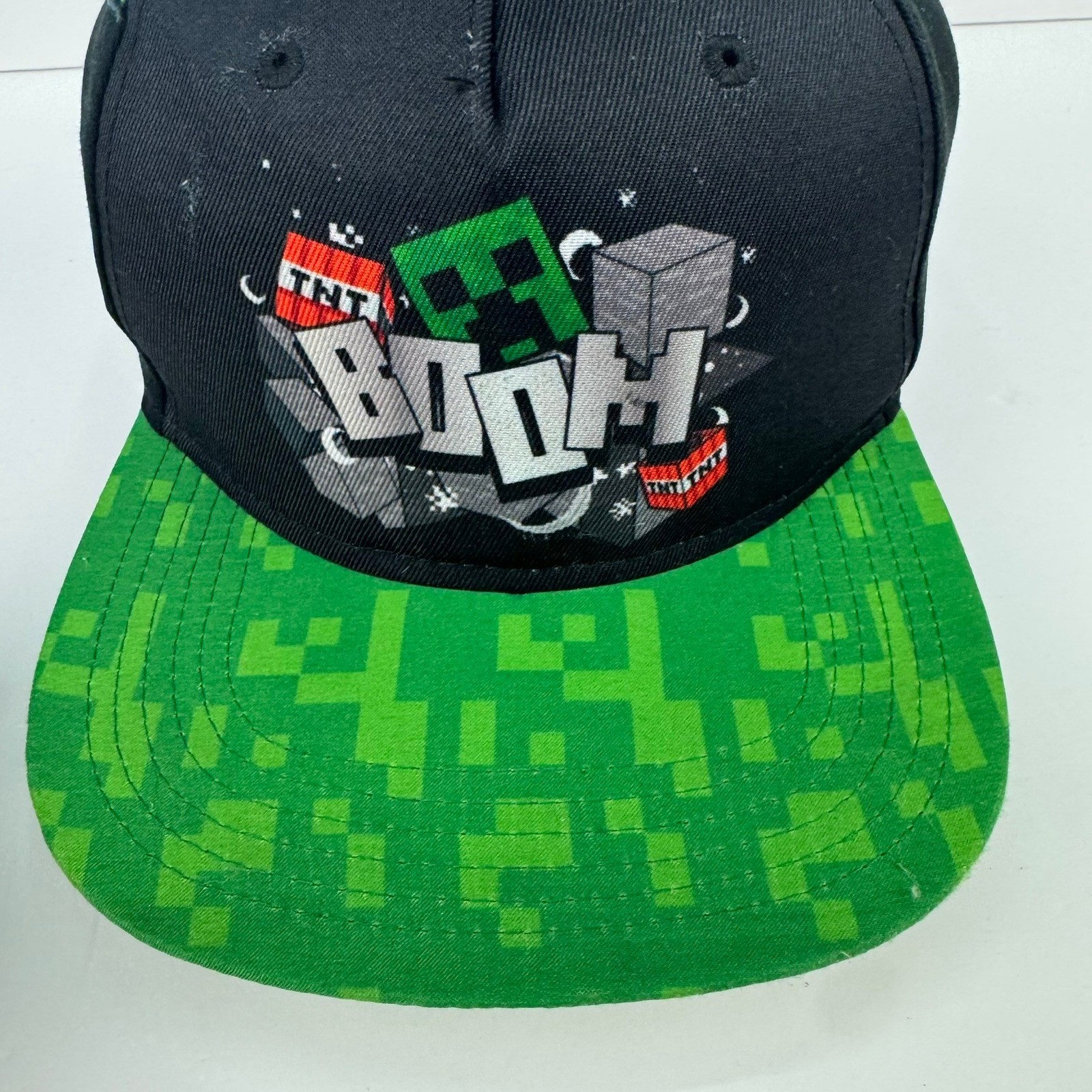 Minecraft Youth Snapback Hat Black Green Creeper TNT BOOM Graphic Cap