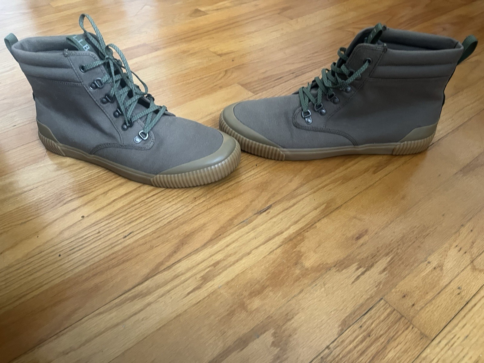 как выглядит LL Bean Eco Woods Men Peat Moss Green canvas Padded Collar Hiking Shoe Size 13 M фото