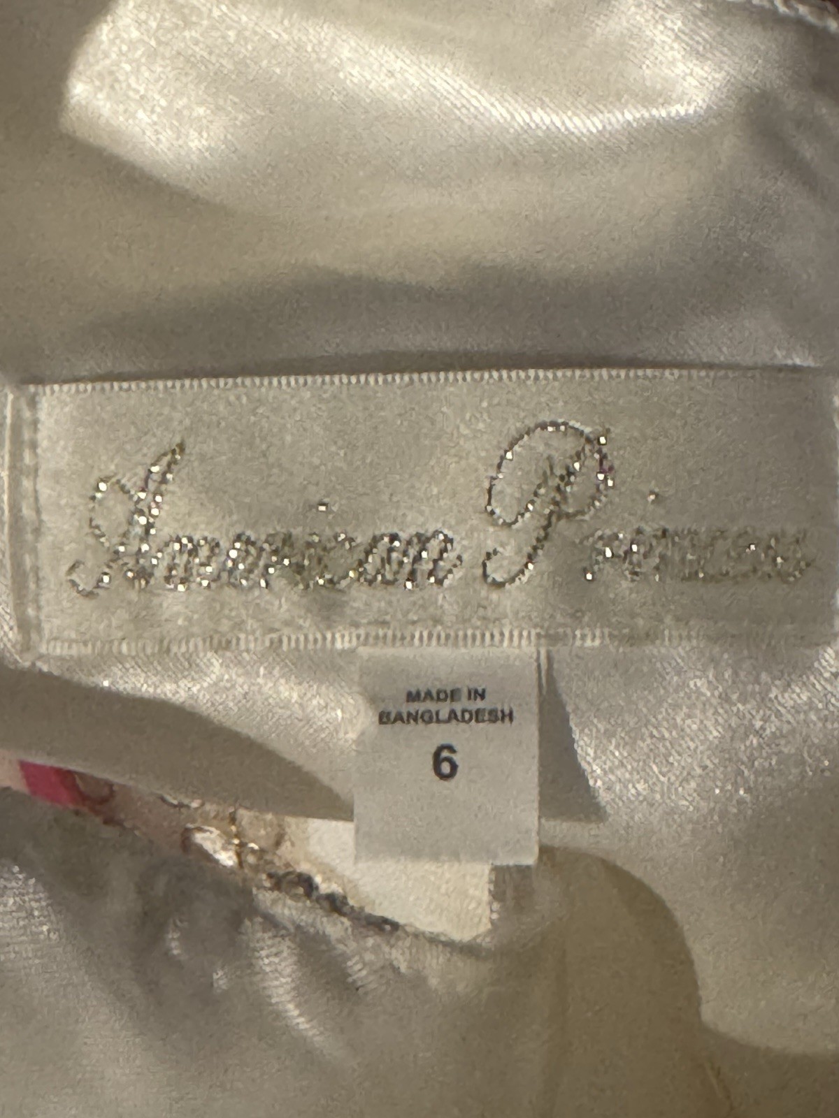 American Princess Ivory Gold Red Floral Lace Sleeveless Dress Child Size 6
