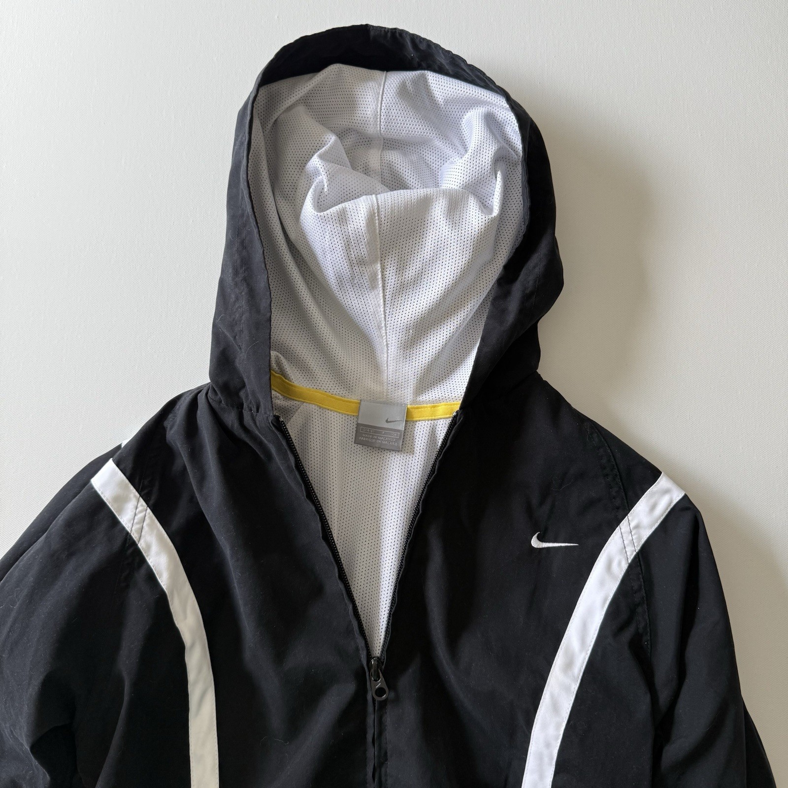 Nike Women's Zipper Jacket Windbreaker with Hood Sz Small Black with Yellow Trim