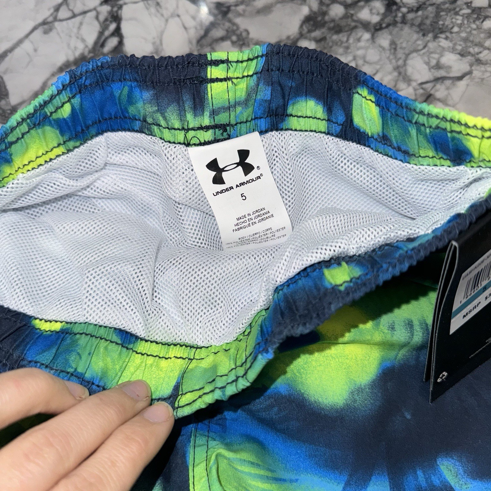 Under Armour Boys Size 5 Green Blue Swim Trunks NEW