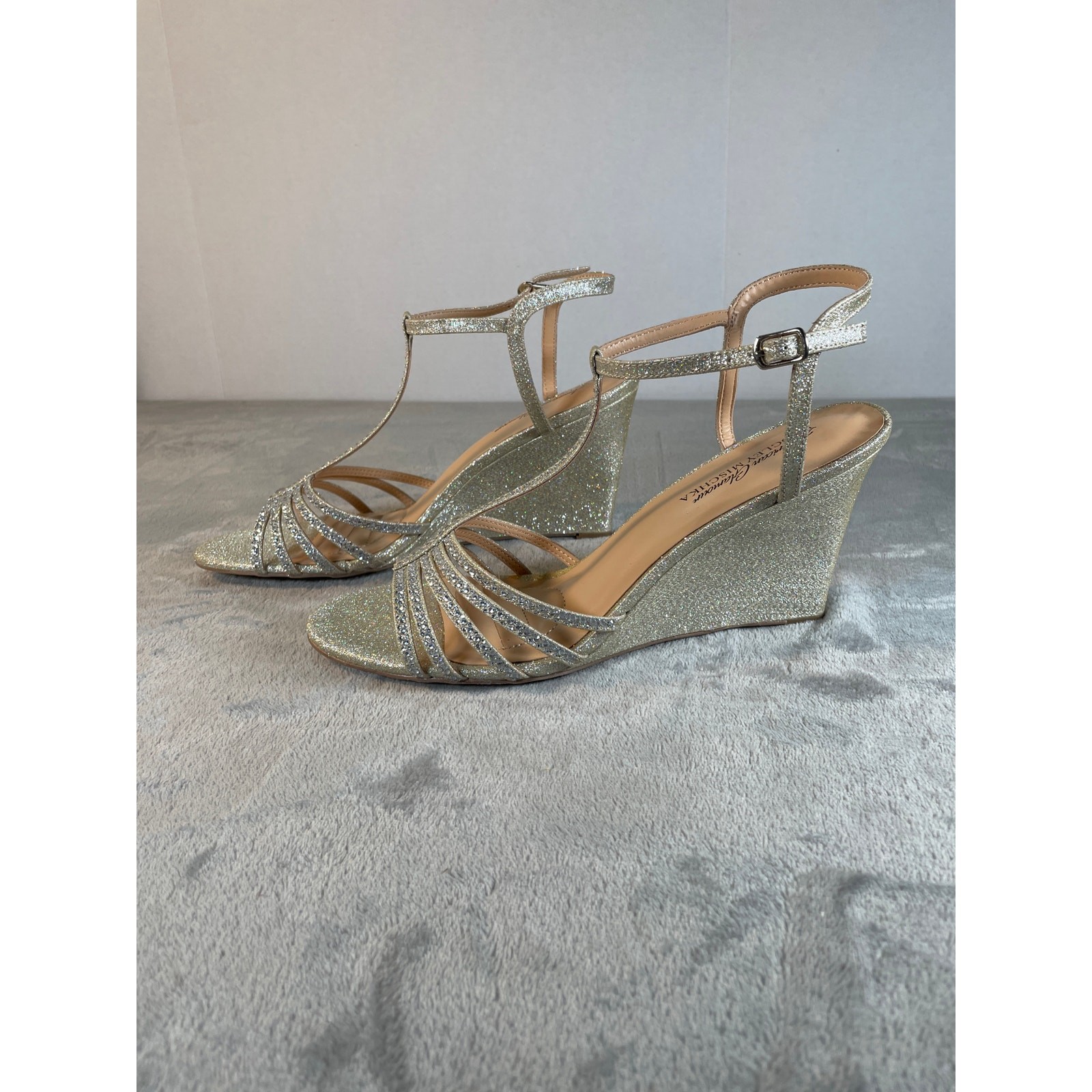 как выглядит Badgley Mischka Vicky Embellished Wedge Heels - Size 10 фото