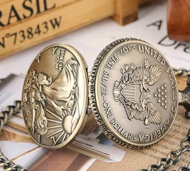 как выглядит Lady Liberty Pocket Watch - Double Sided Face - US Eagle Design фото