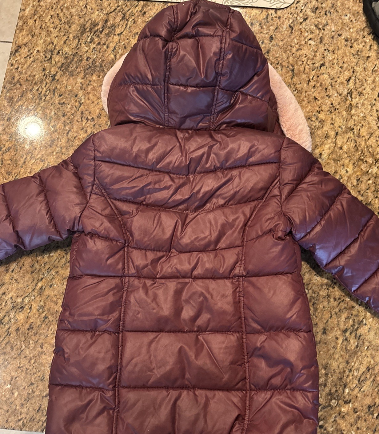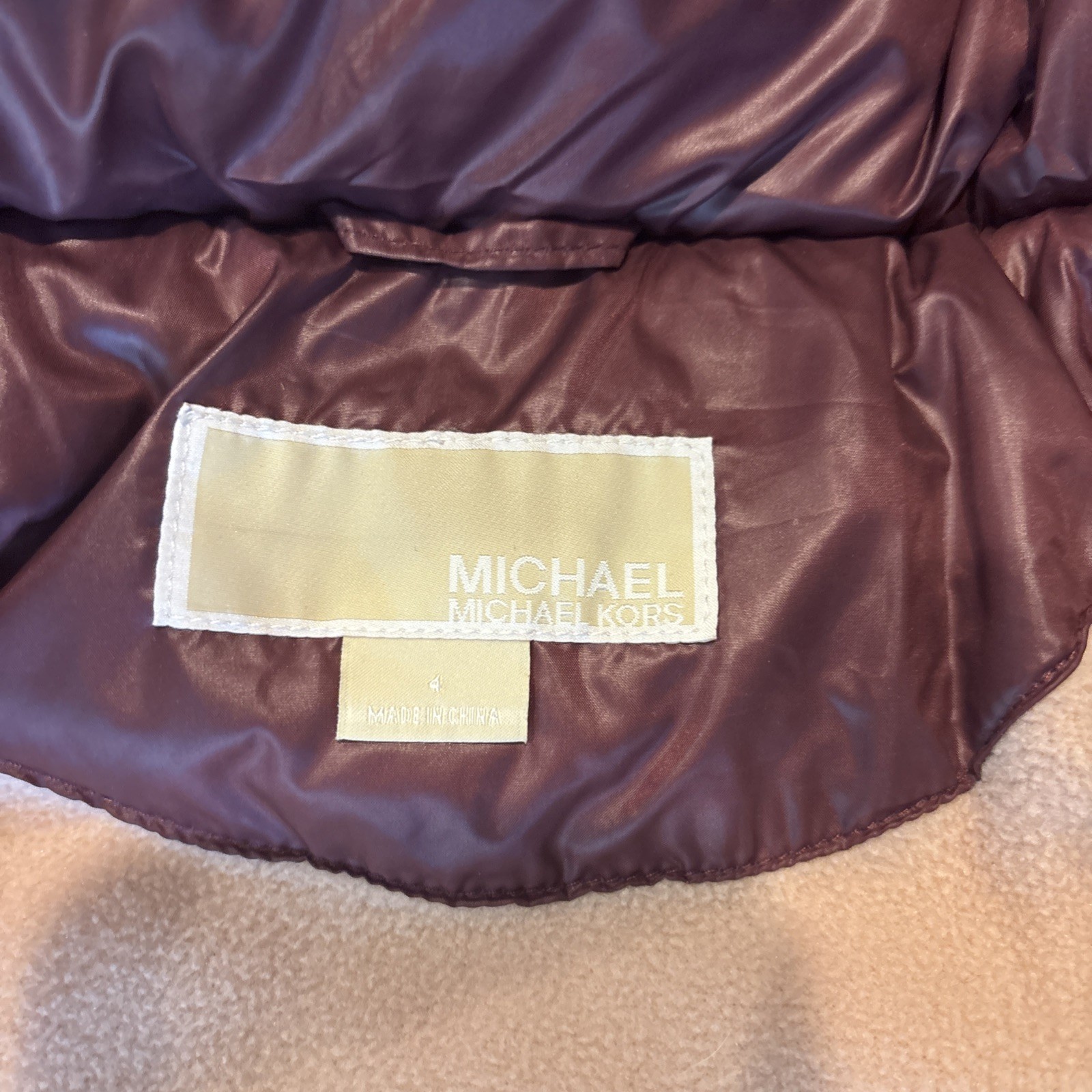 как выглядит Michael Kors Big Girls Stadium Length Puffer Jacket Dark Red/Wine Size 4 фото