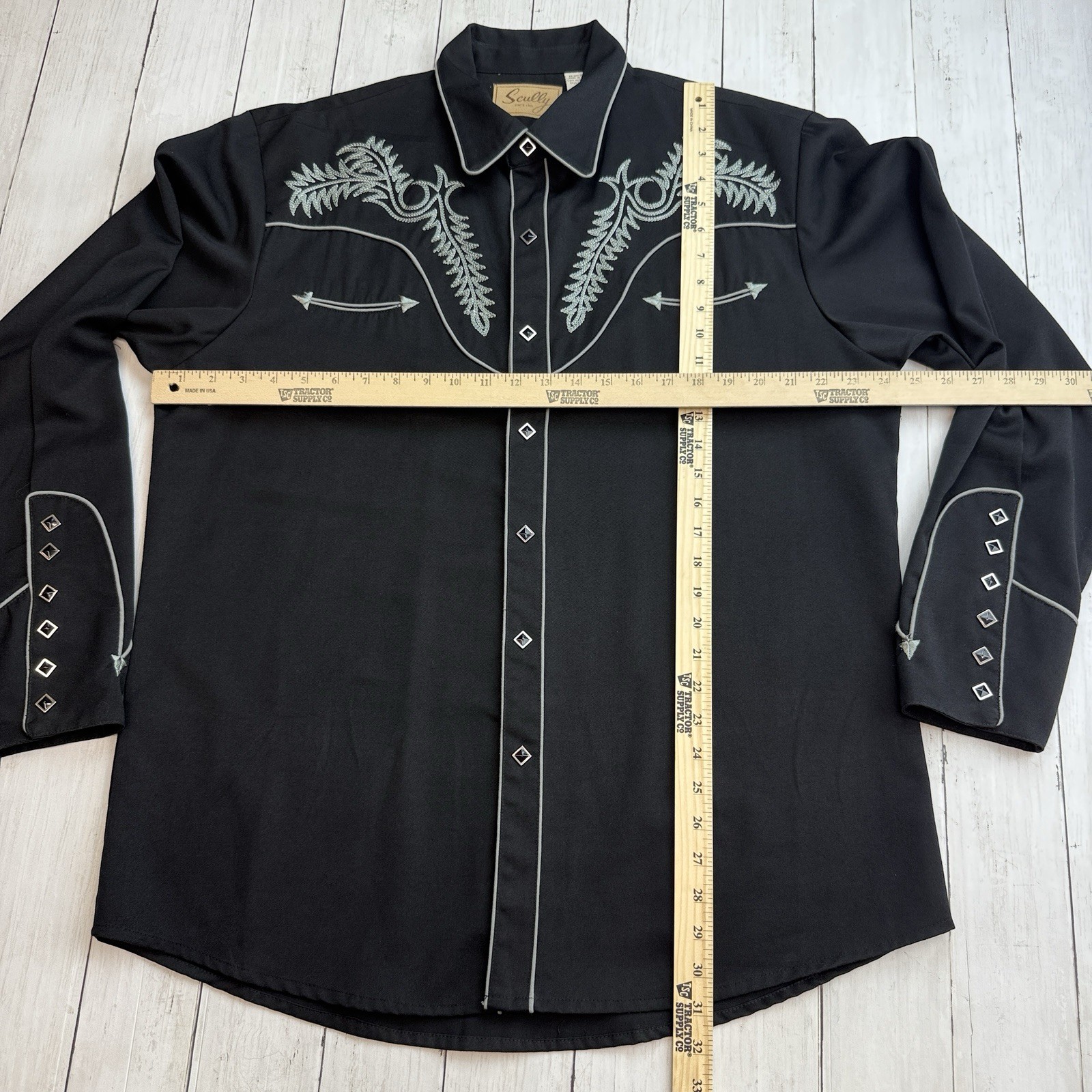 как выглядит Scully Embroidered Western Diamond Pearl Snap Shirt Mens Size Large Black фото
