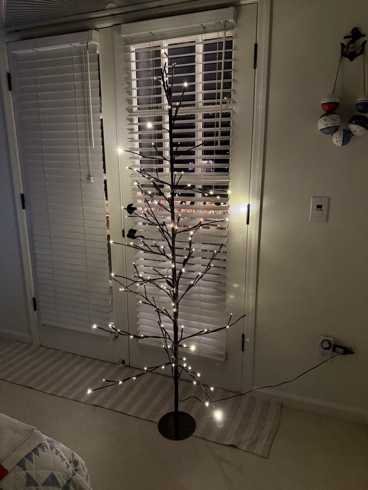 Lighted Christmas Wall Tree 6 Ft 180 LED Warm White Lights Timer Indoor Outdoor