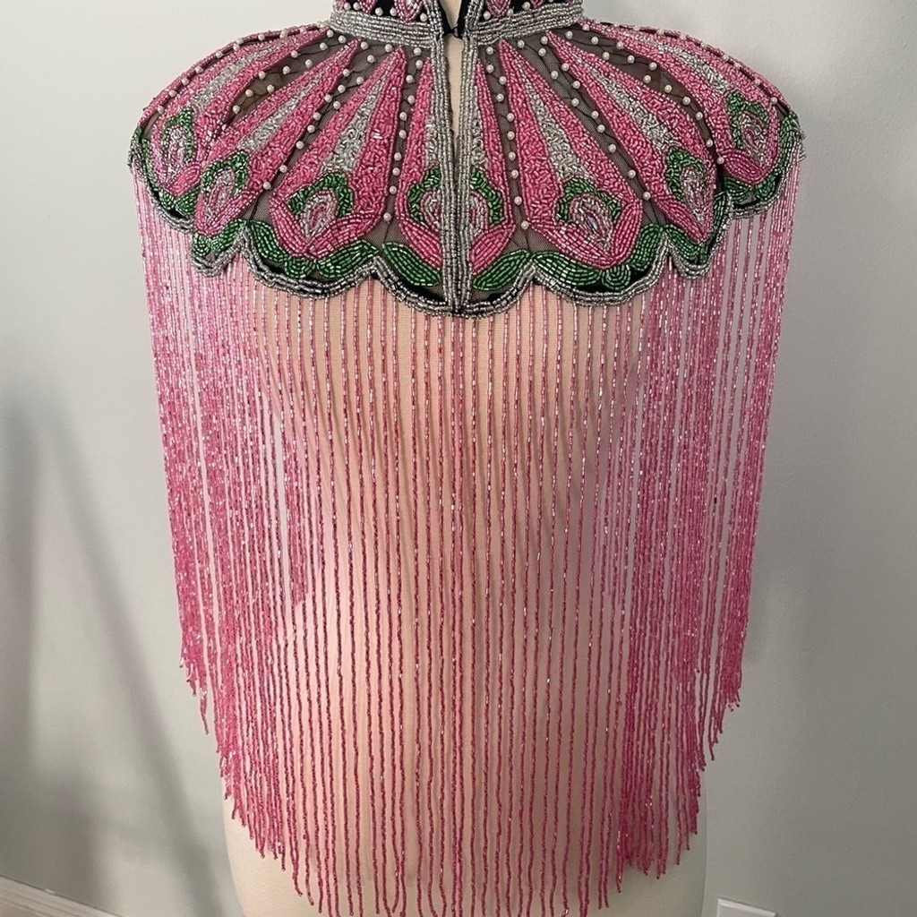 как выглядит Pretty and Green Pearls Hand beaded fringe Cape фото