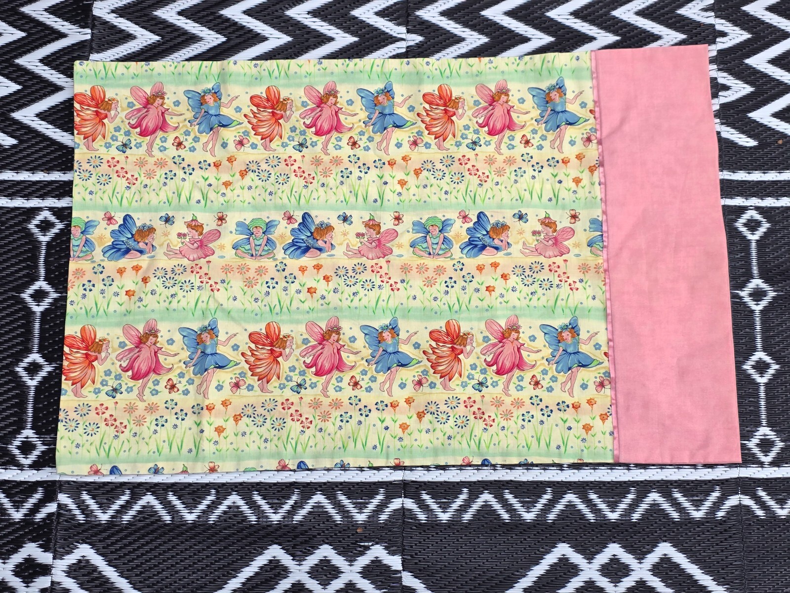 Handmade pillowcase standard size Pink fairies fairy girls colorful flowers
