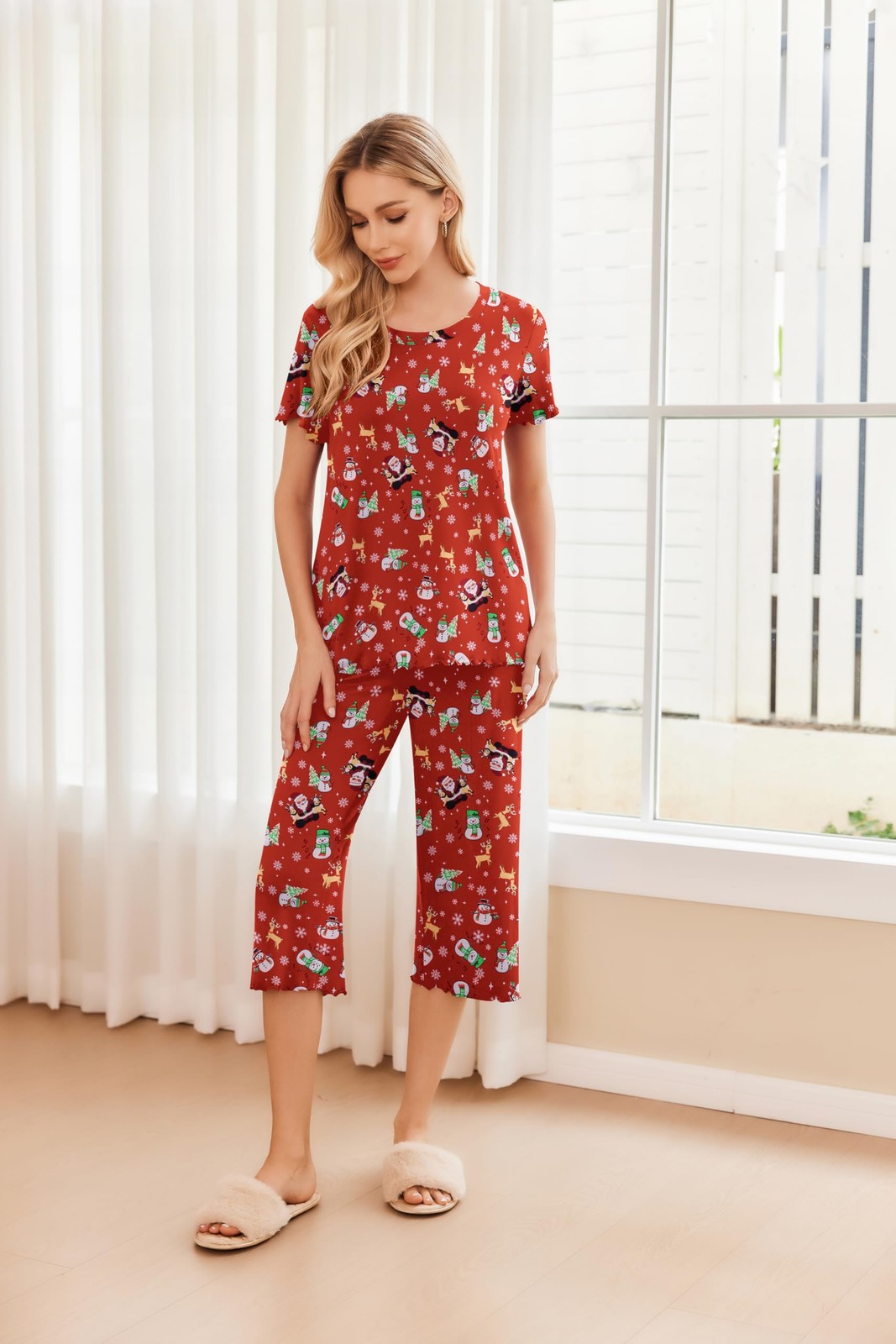 2 Pack: Women's Pajamas Set Short Sleeve Sleepwear Capri Pants Pjs Soft Loung...