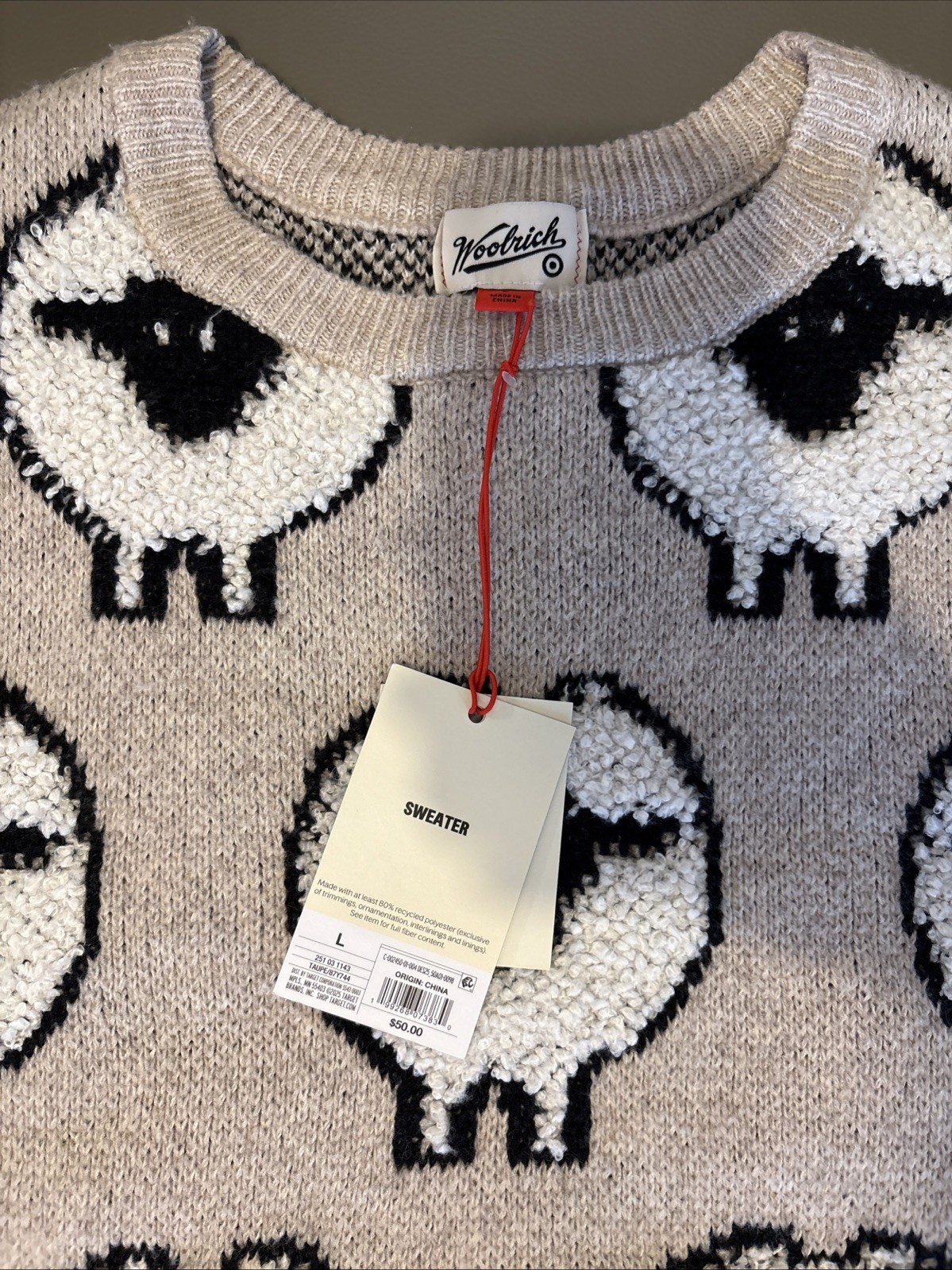 Woolrich x Target Adult Sheep Print Pullover Sweater Taupe NWT Large L Unisex