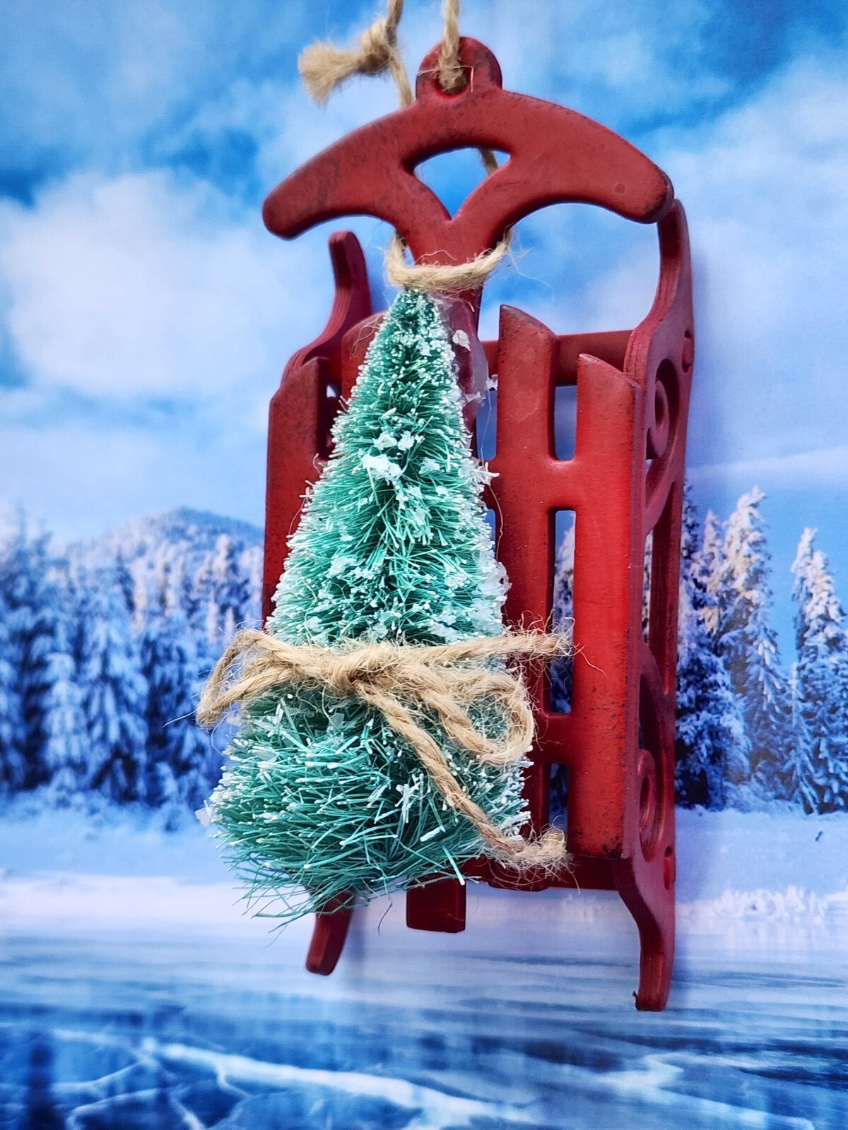 Country Red Sled with tree BB Ranch Cowboy Western Christmas Ornament New NWT