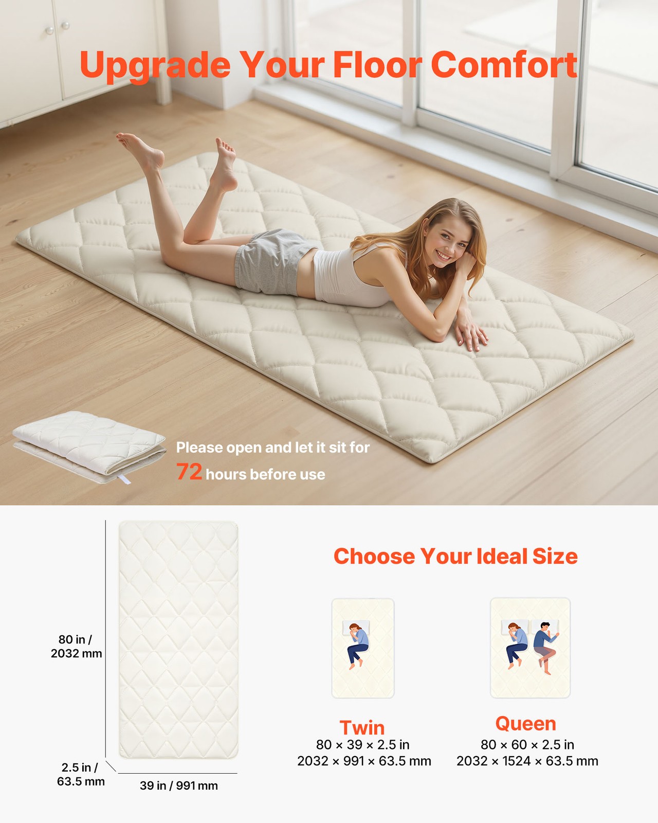 VEVOR Japanese Tatami Mat Twin Foldable Futon Mattress with Storage Bag White
