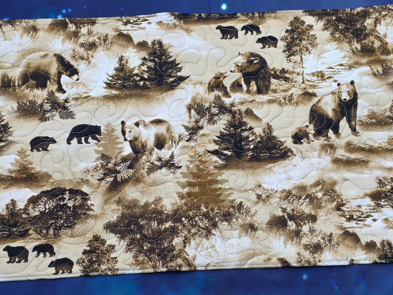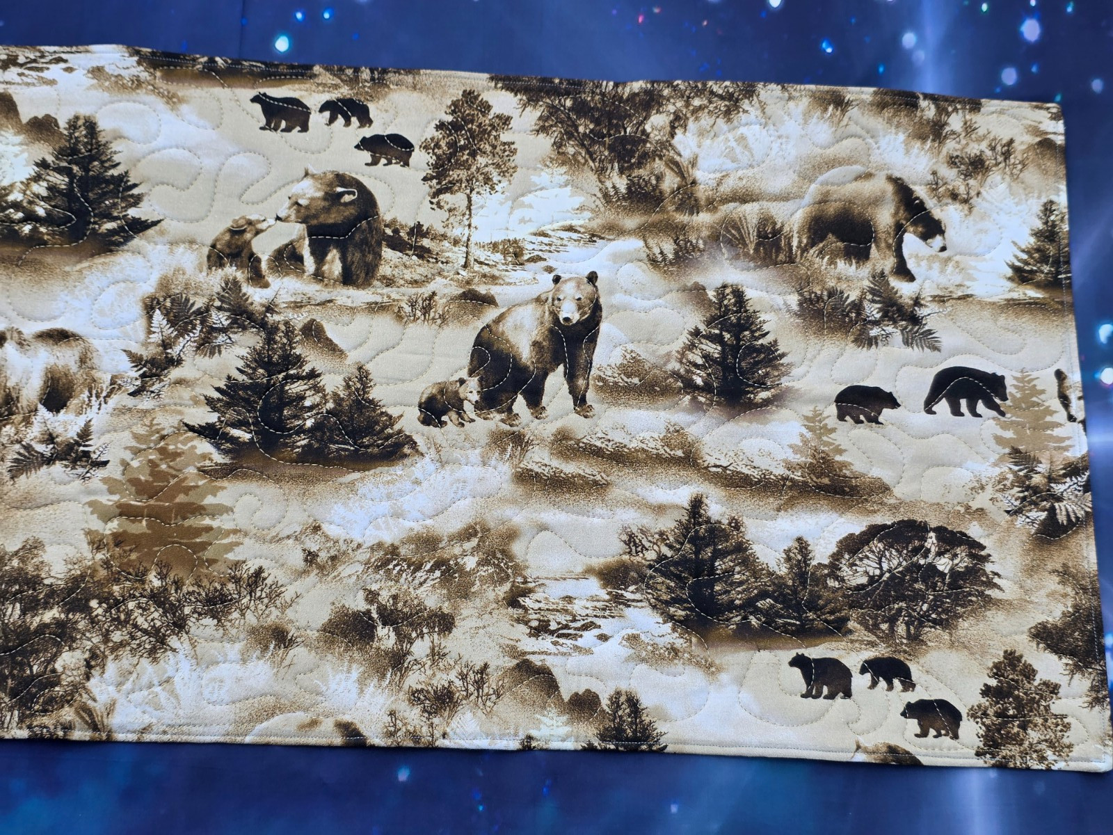 Handmade Quilted Table Runner sepia wildlife animals bears trees lodge cabin