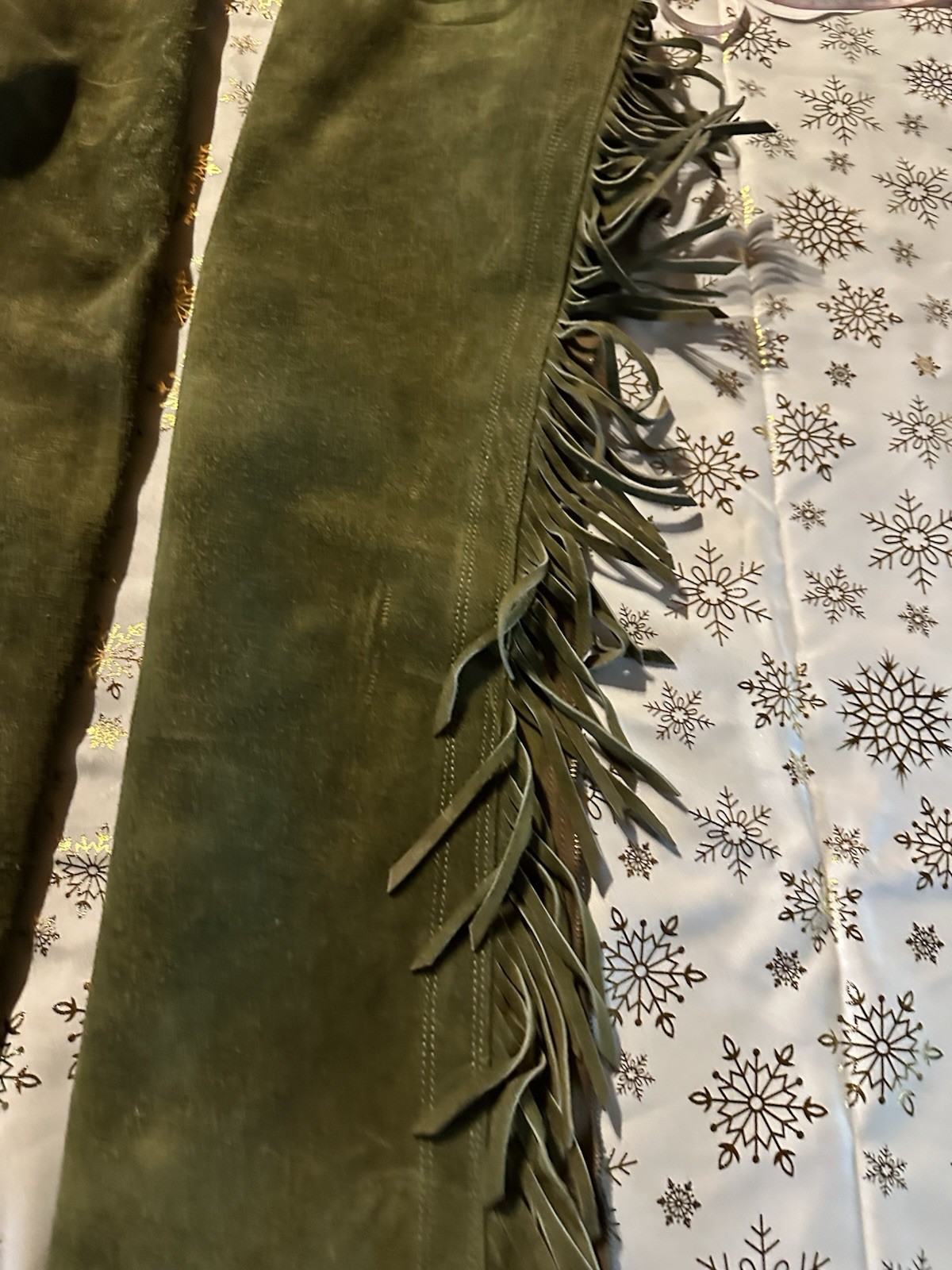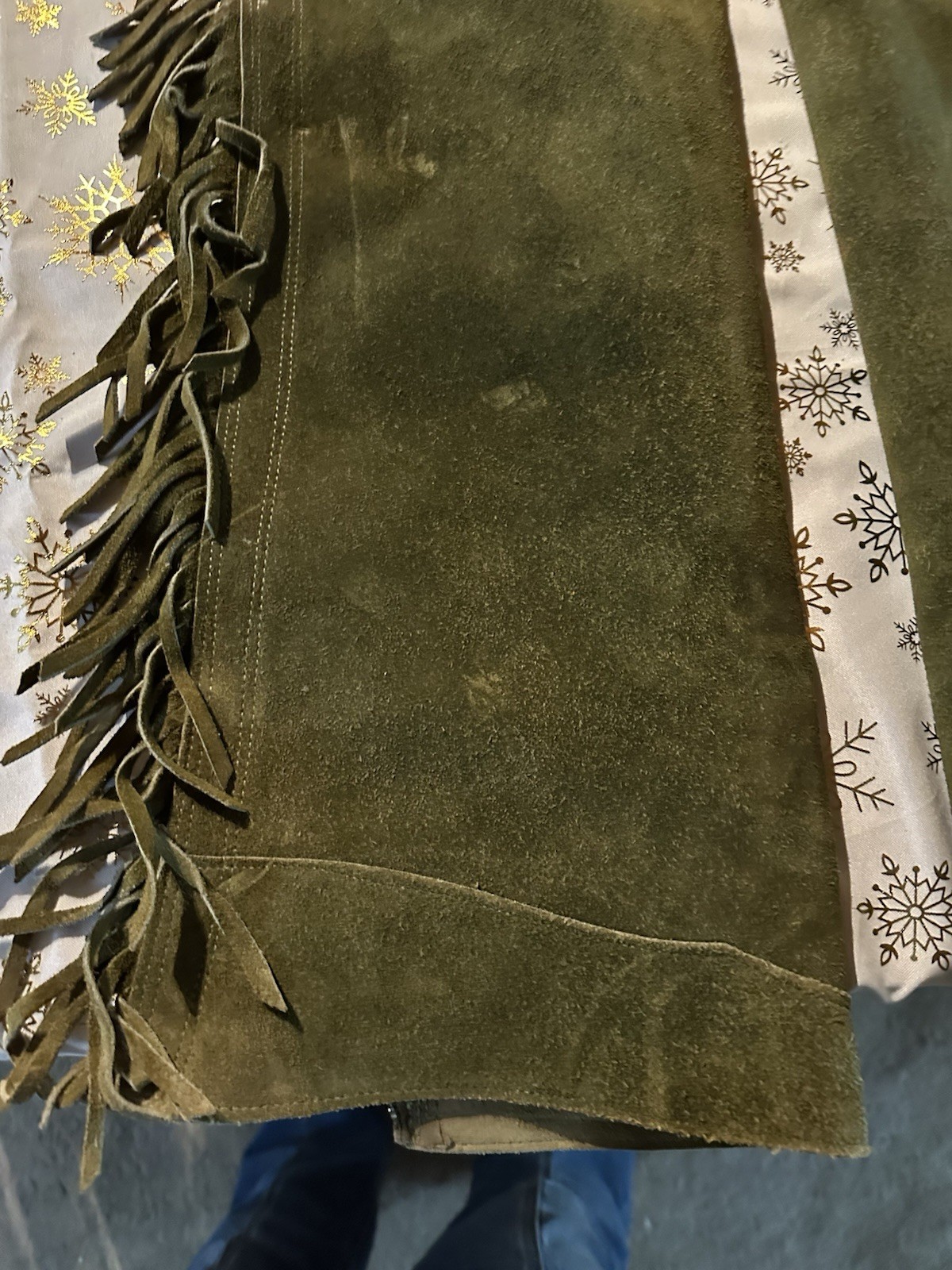 как выглядит Vintage Antique Olive Green Chaps 41 Inches Leather фото